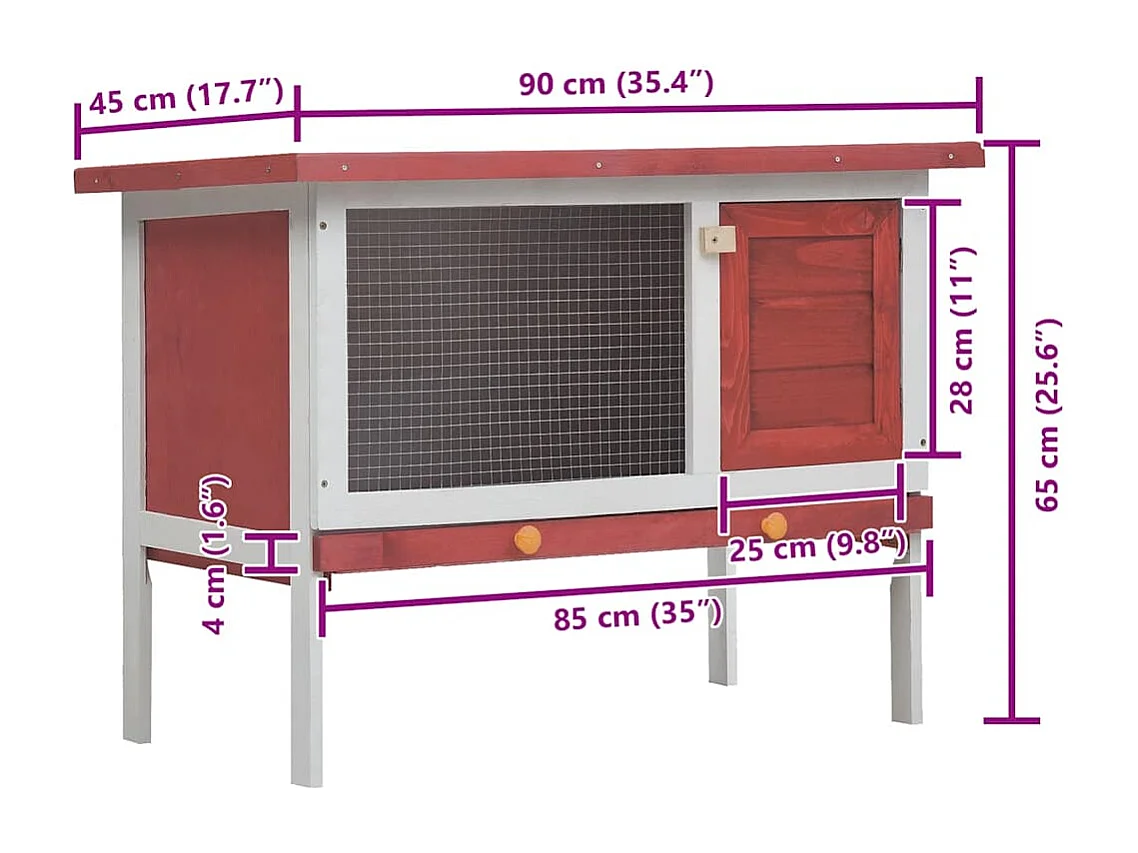 Clapier d'extérieur 1 porte Rouge Bois