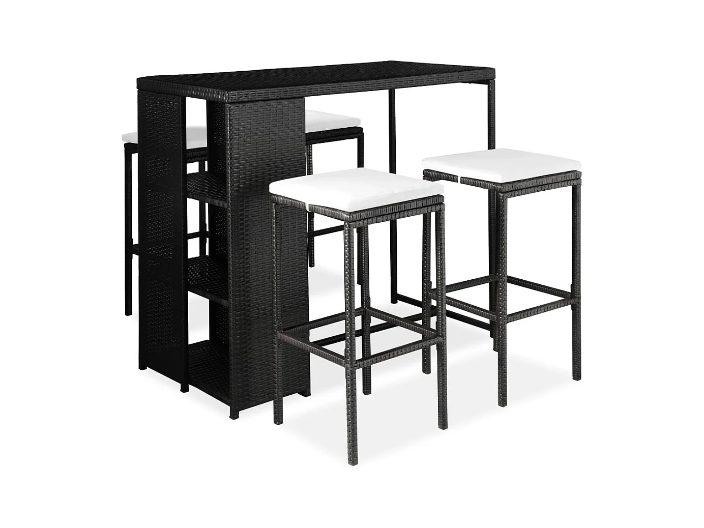 Kaden Lee Ensemble de bar de jardin 5 pcs et coussins Résine tressée Noir