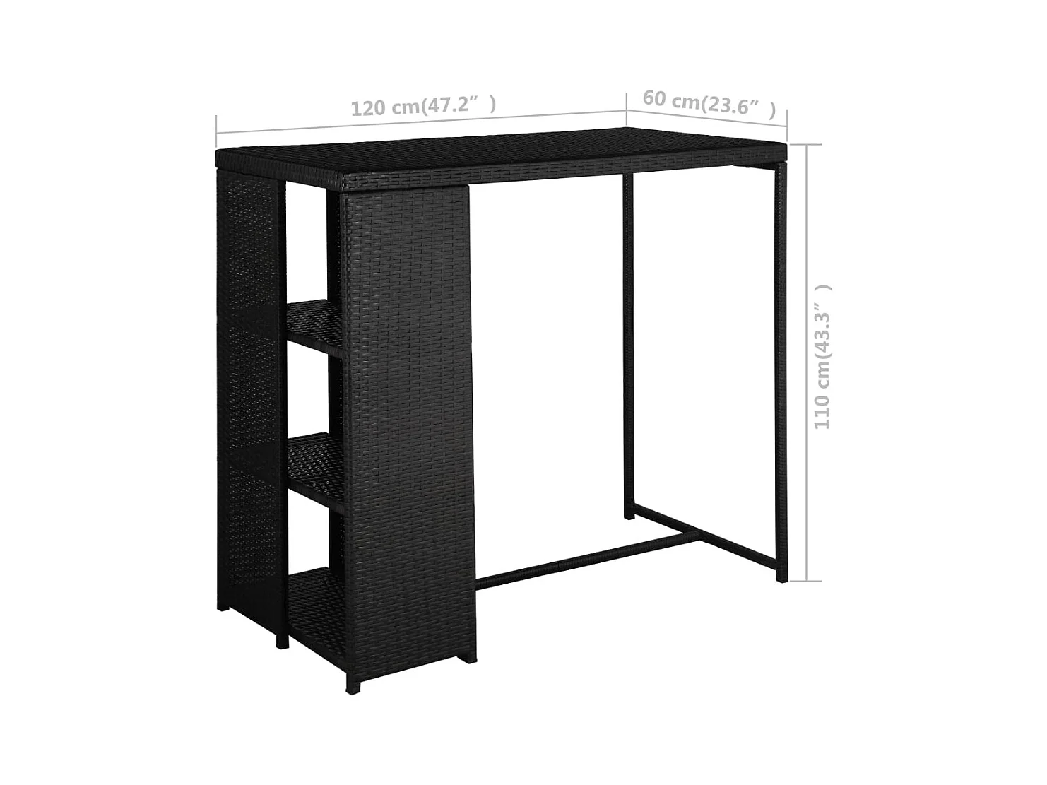 Table de bar et dessus en verre noir 185x80x110 cm poly rotin