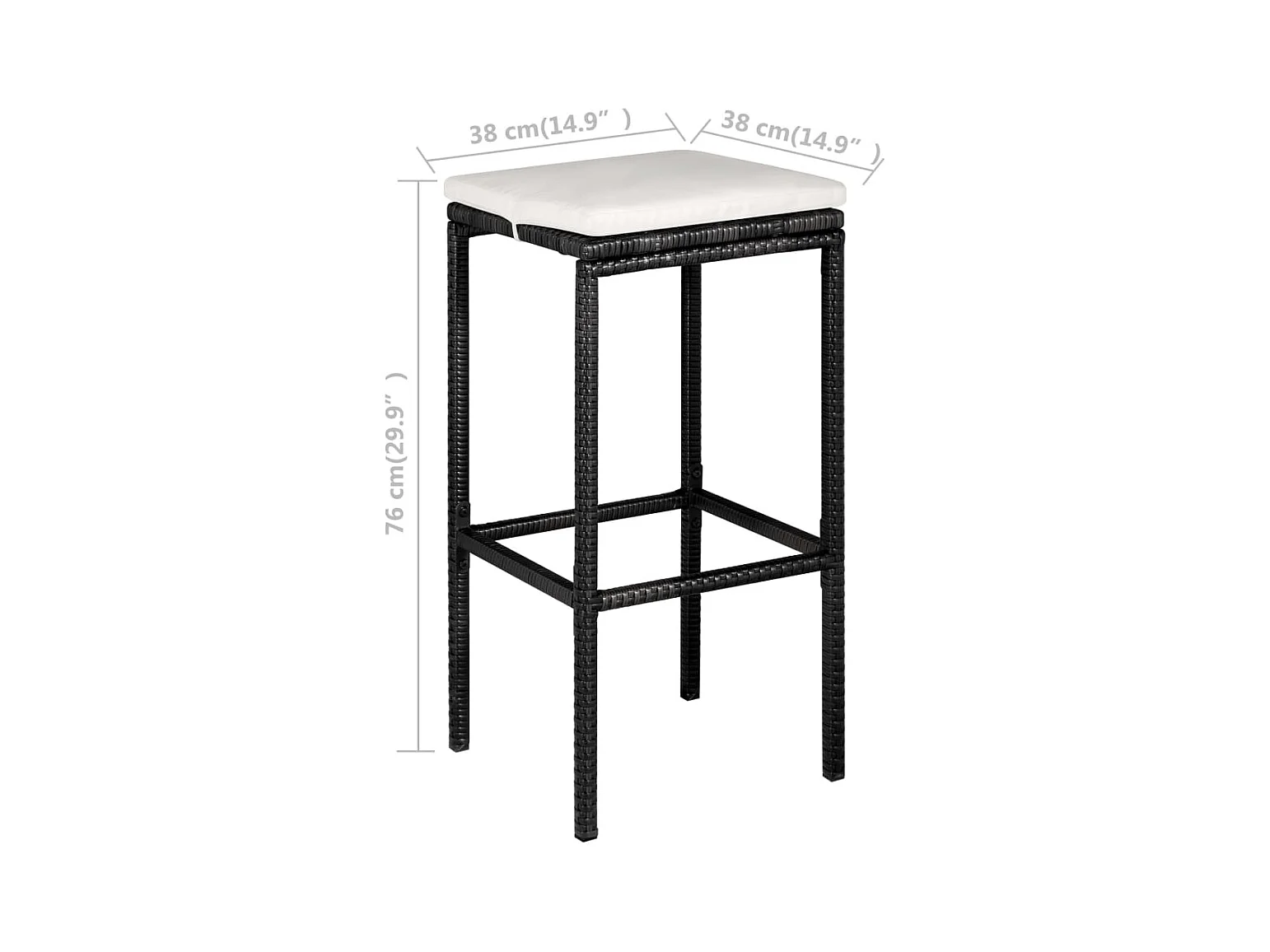 Kaden Lee Ensemble de bar de jardin 3 pcs et coussins Résine tressée Noir