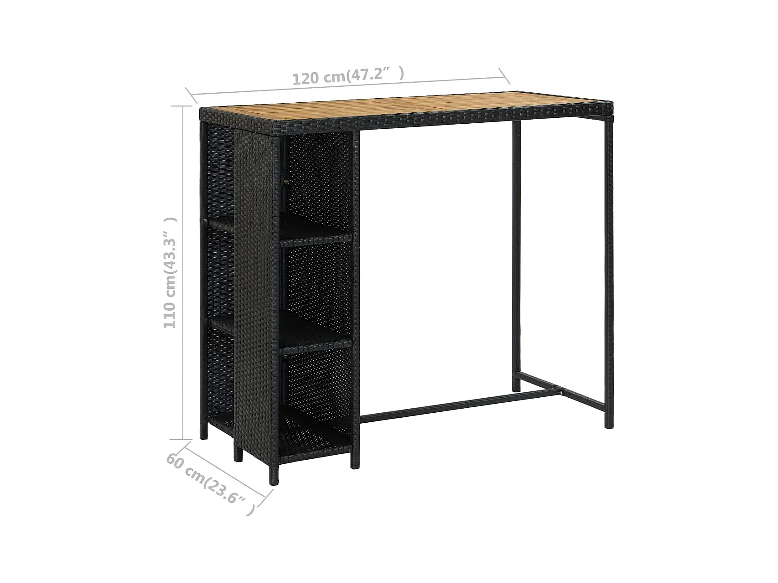 Pierre-Guillaume Ensemble de bar jardin 5 pcs noir poly rotin/bois massif acacia