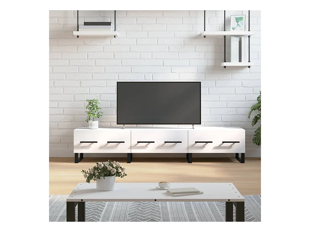 Yusufcan Meuble TV blanc brillant 150x36x30 cm bois d'ingénierie