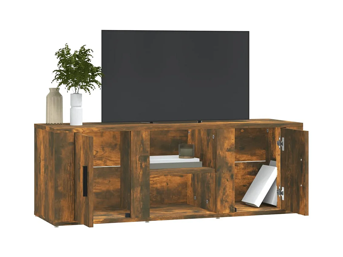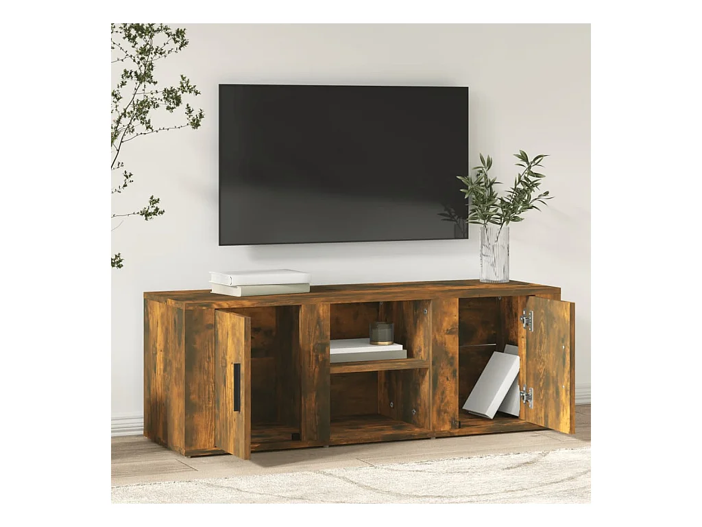 Hidran Meuble TV Chêne fumé 100x31,5x35 cm Bois d'ingénierie