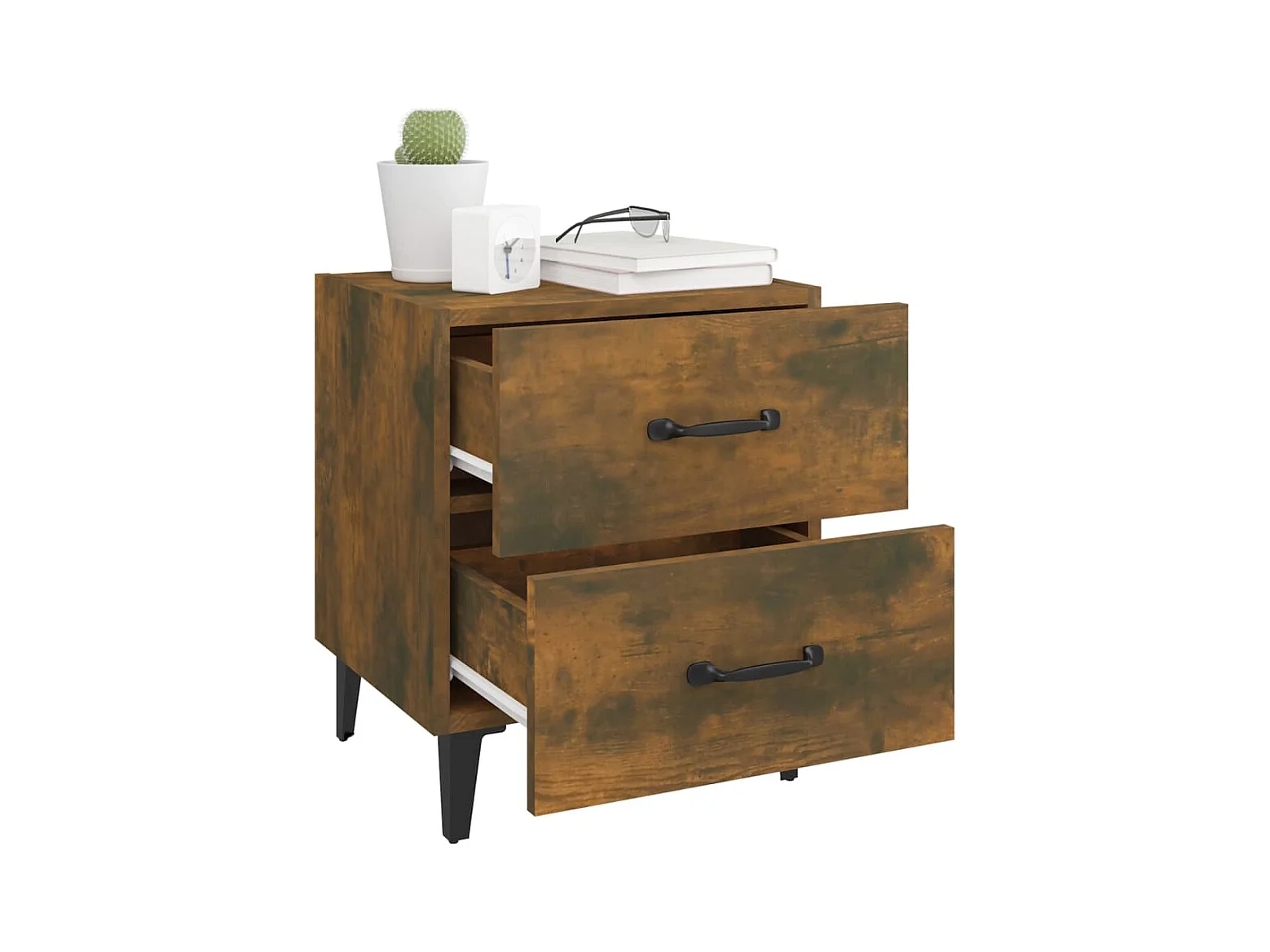 Artan Table de chevet avec pieds en métal Chêne fumé 40x35x69 cm