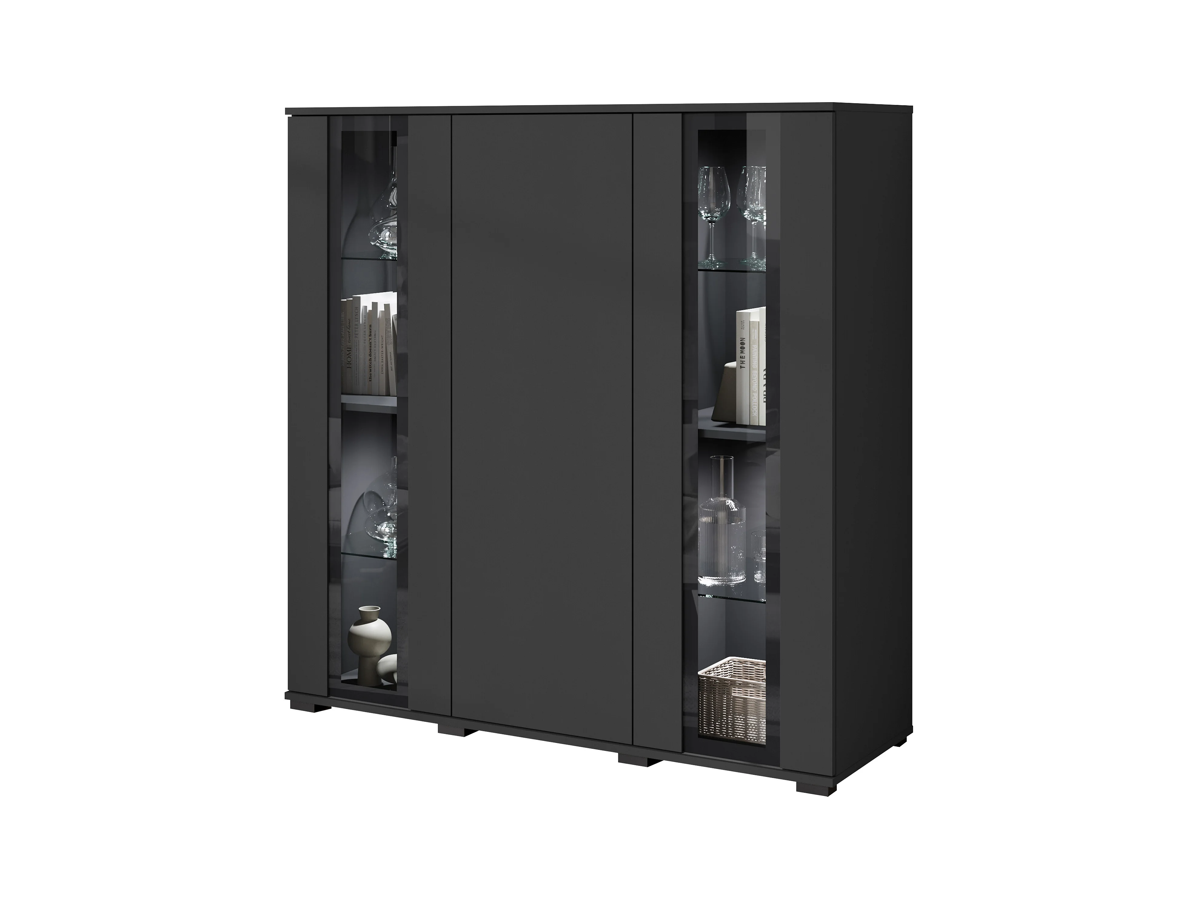 Highboard moderne 120 cm avec LED – vitrine haute de salon avec vitrages noir mat