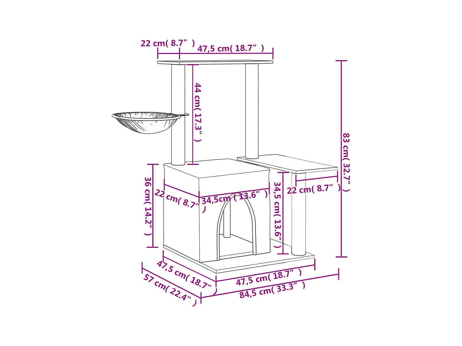 Nylara Arbre à chat avec griffoirs en sisal Gris clair 83 cm