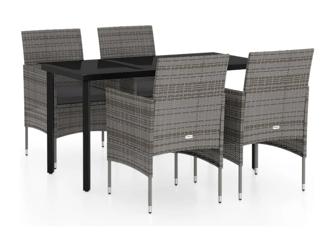 Vernon Ensemble à manger de jardin et coussins 5pcs Gris/noir
