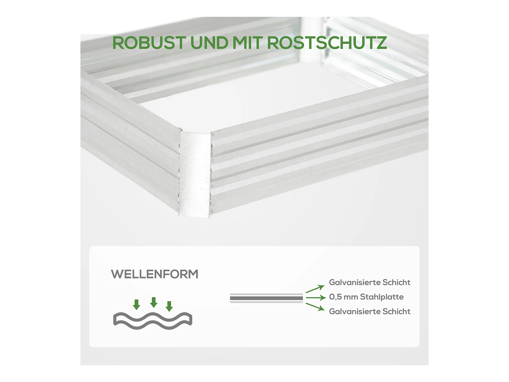 Hochbeet Gartenbeet aus verzinktem Stahl Silber (120x90x30 cm)