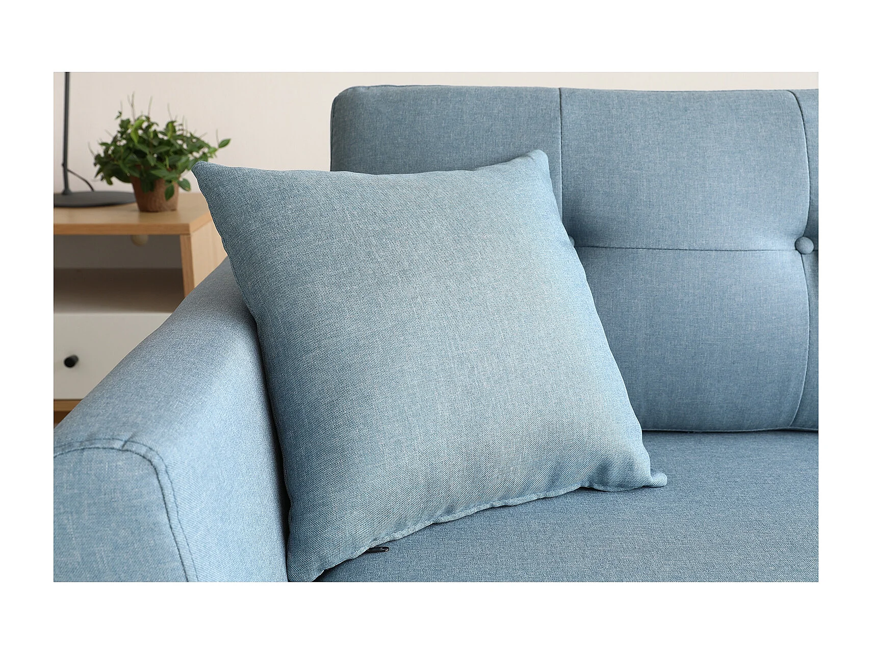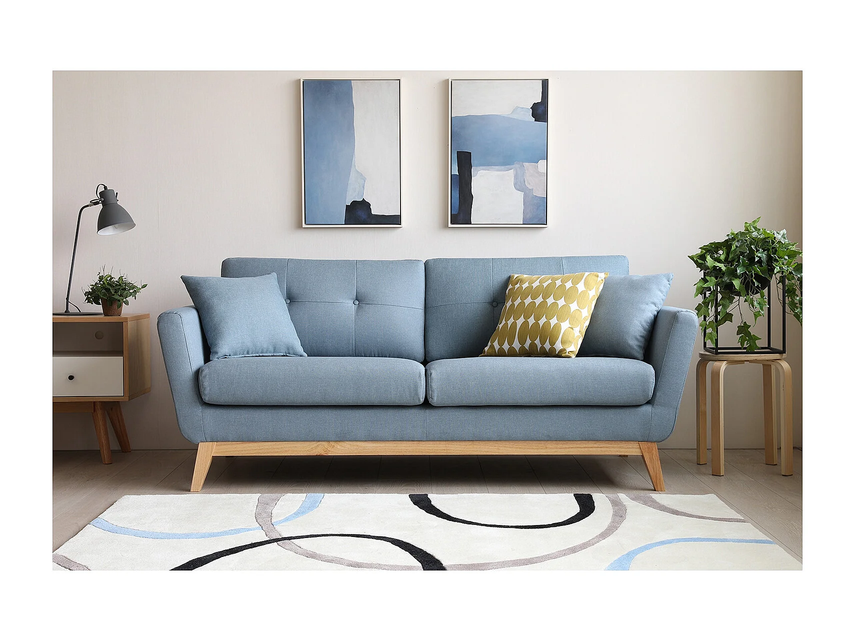 Canapé scandinave 3 places en tissu bleu pastel HOGA
