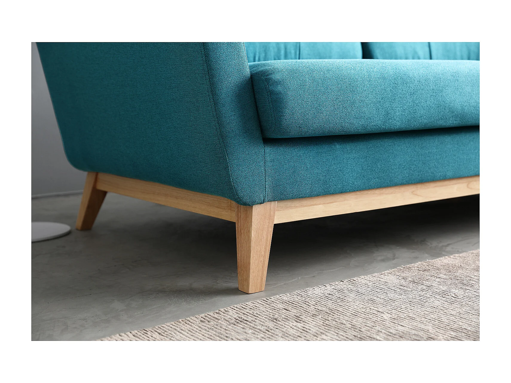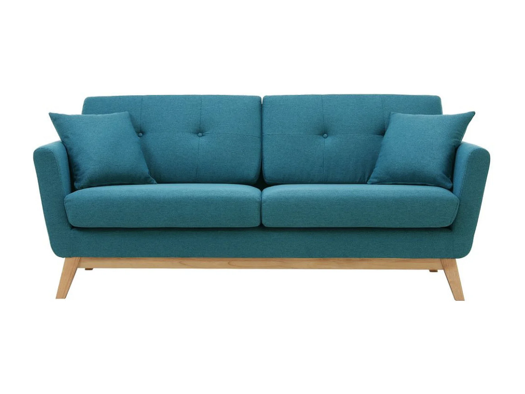 Canapé scandinave 3 places et 2 coussins en tissu bleu canard HOGA