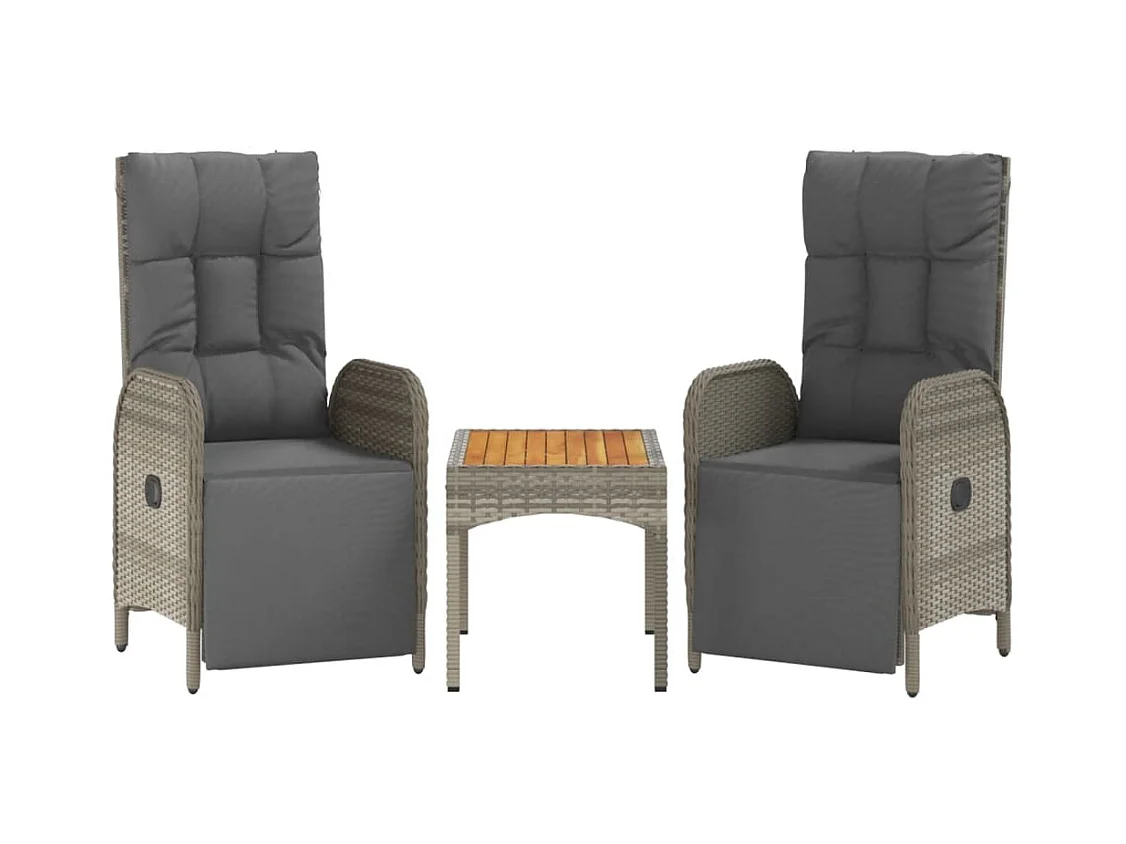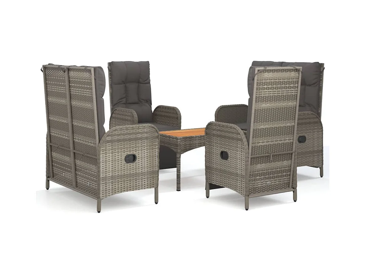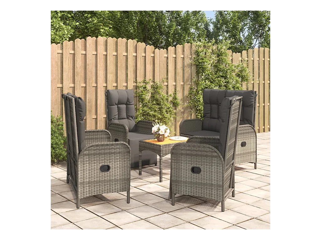 Fea Ensemble à manger d'extérieur 5pcs coussins résine tressée gris