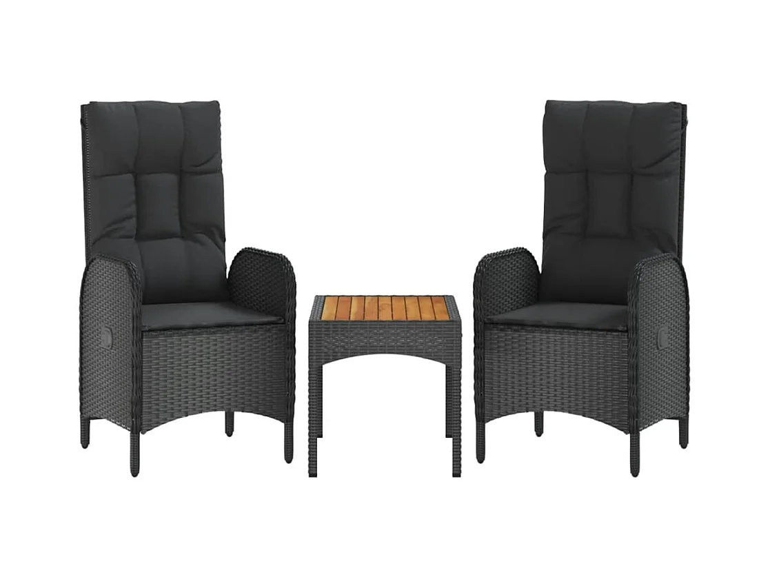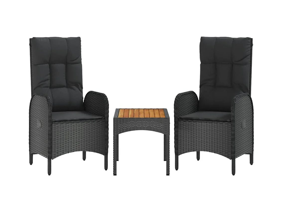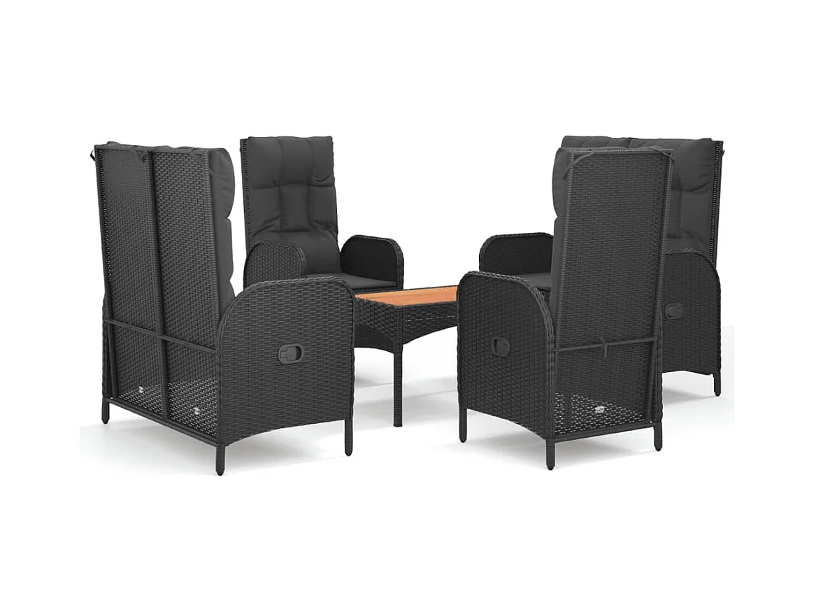 Garden Furniture - Ensemble à manger de jardin 5pcs Noir Poly rotin et acacia