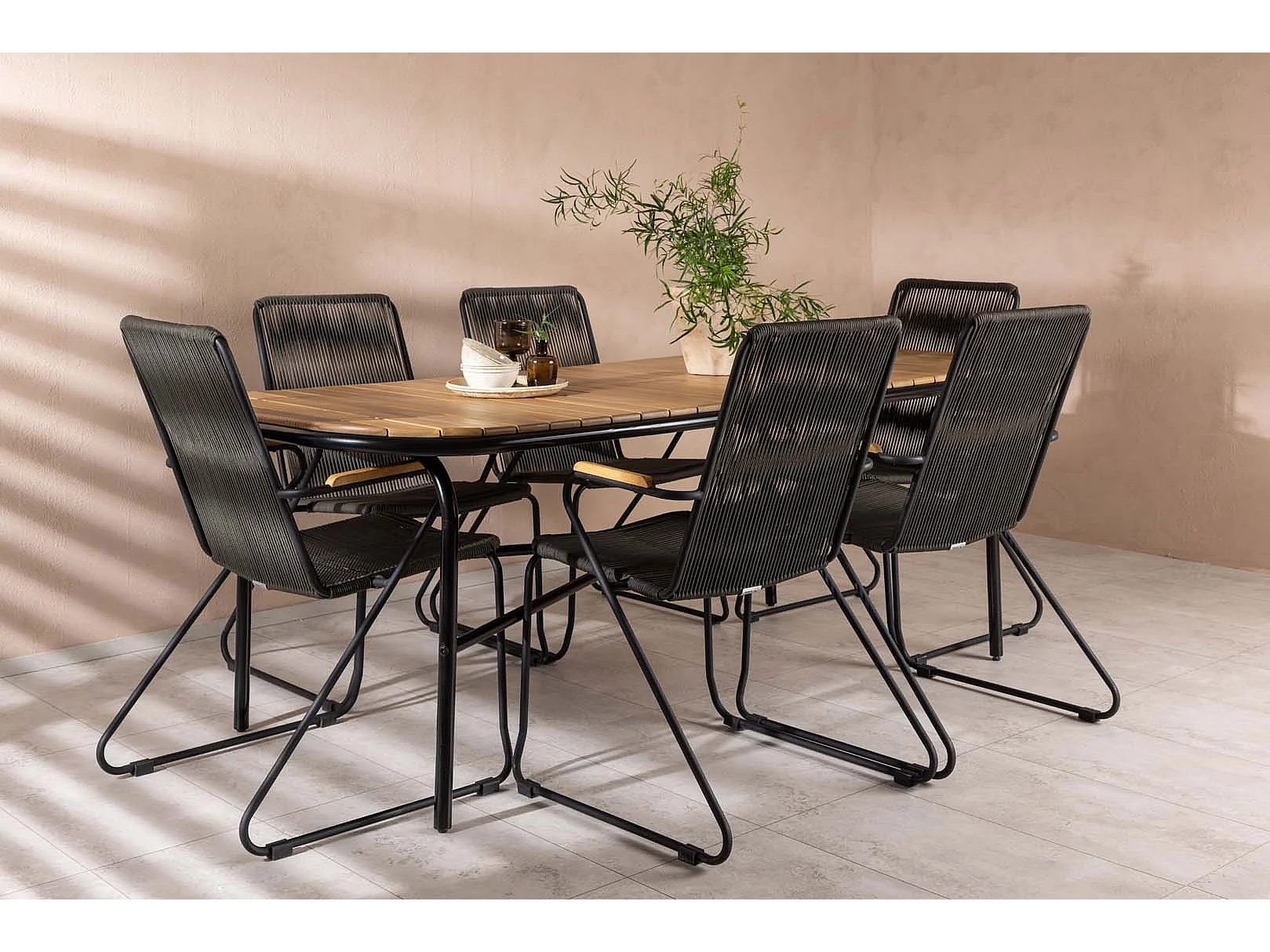 Holmbeck set de jardin table 90x200cm naturel, 6 chaises Copacabana noir.
