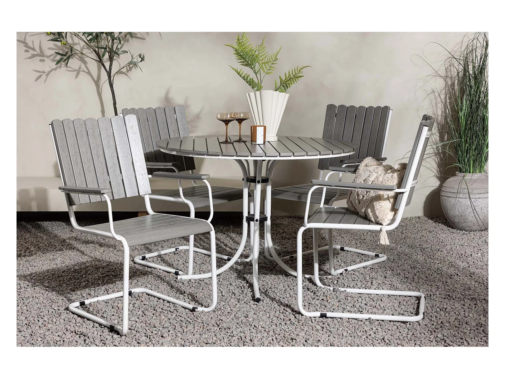 Salon de jardin 5 pcs avec coussins gris résine tressée