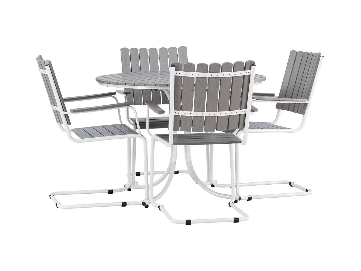 Salon de jardin 5 pcs avec coussins gris clair résine tressée