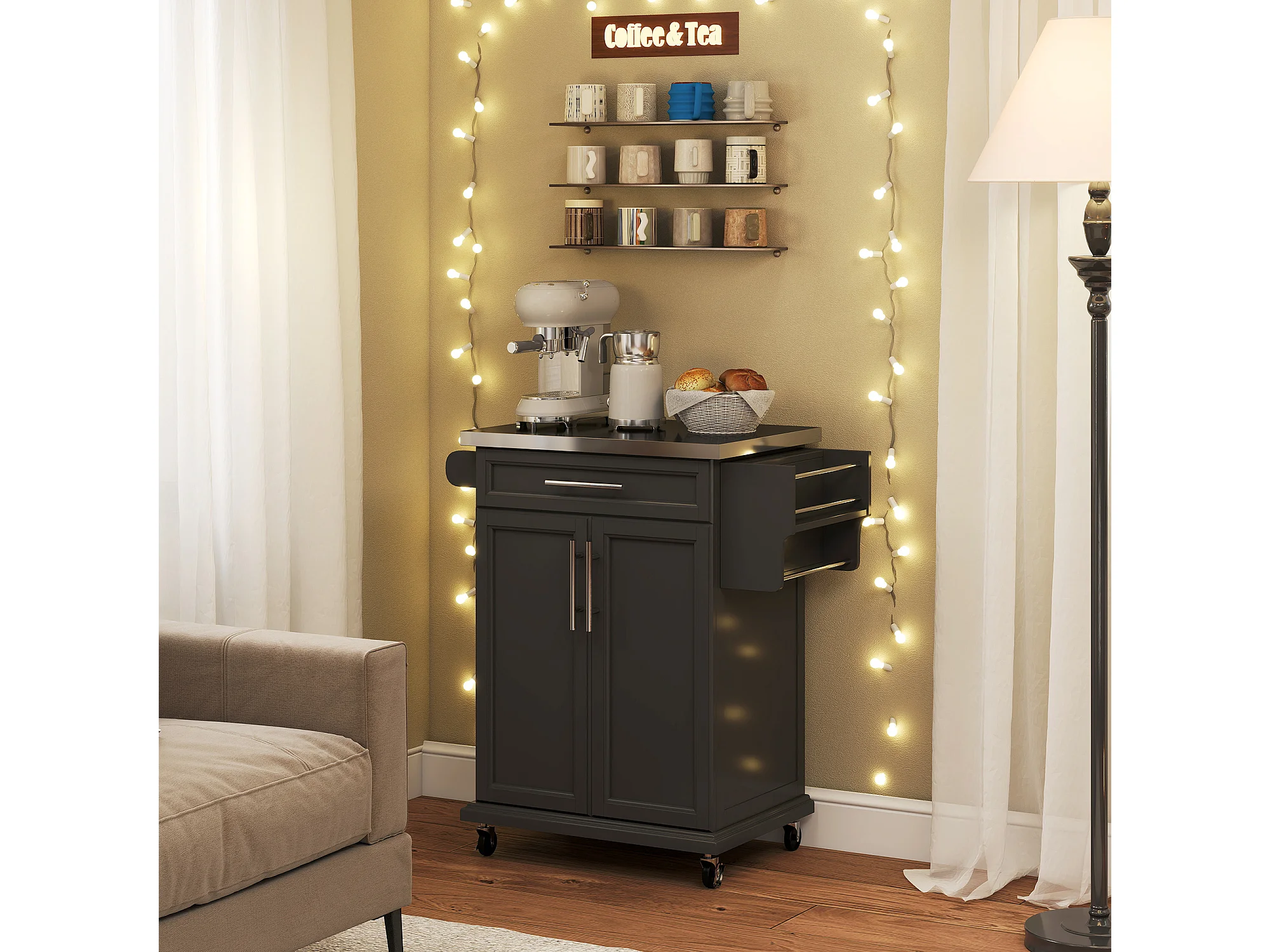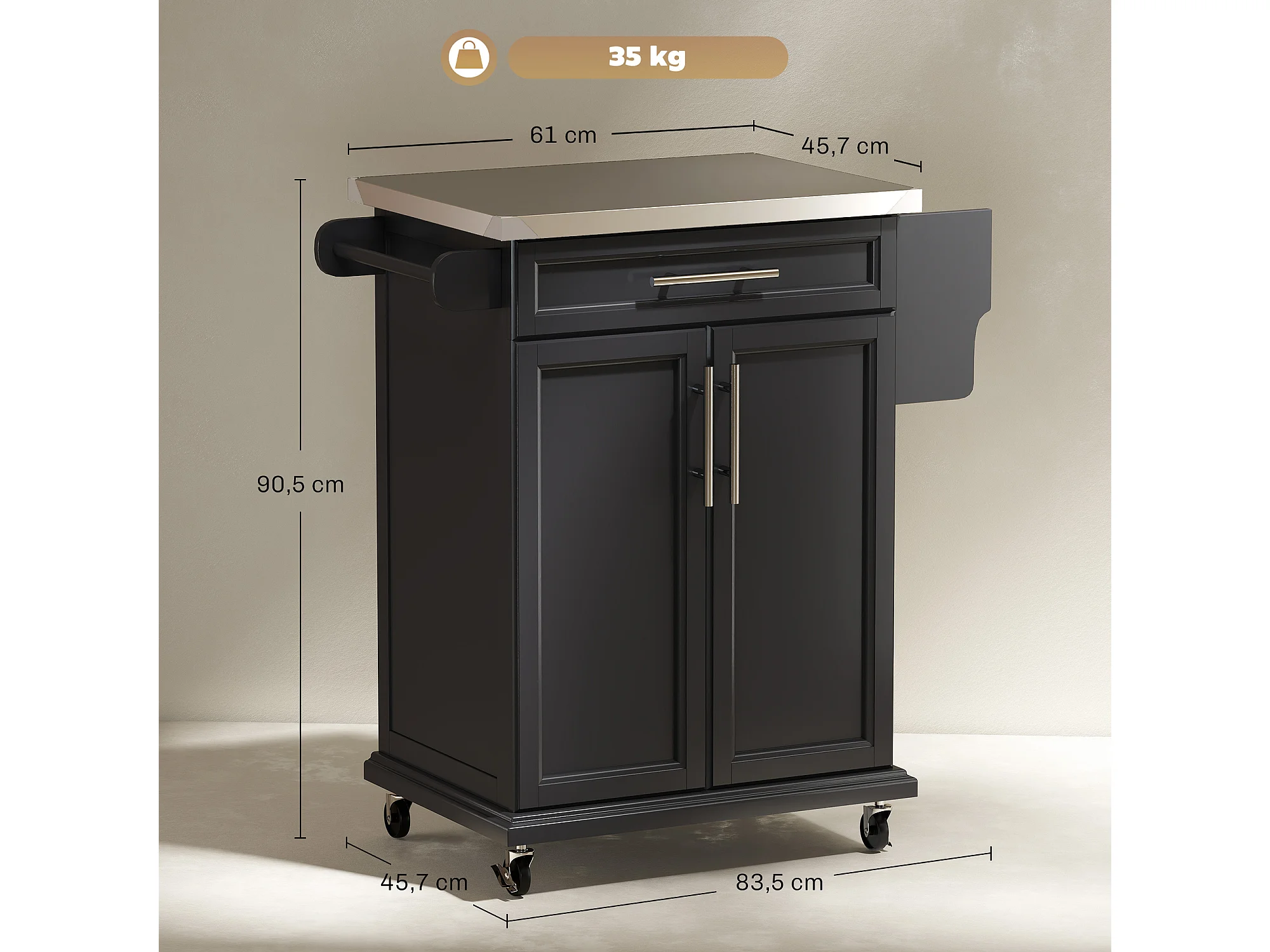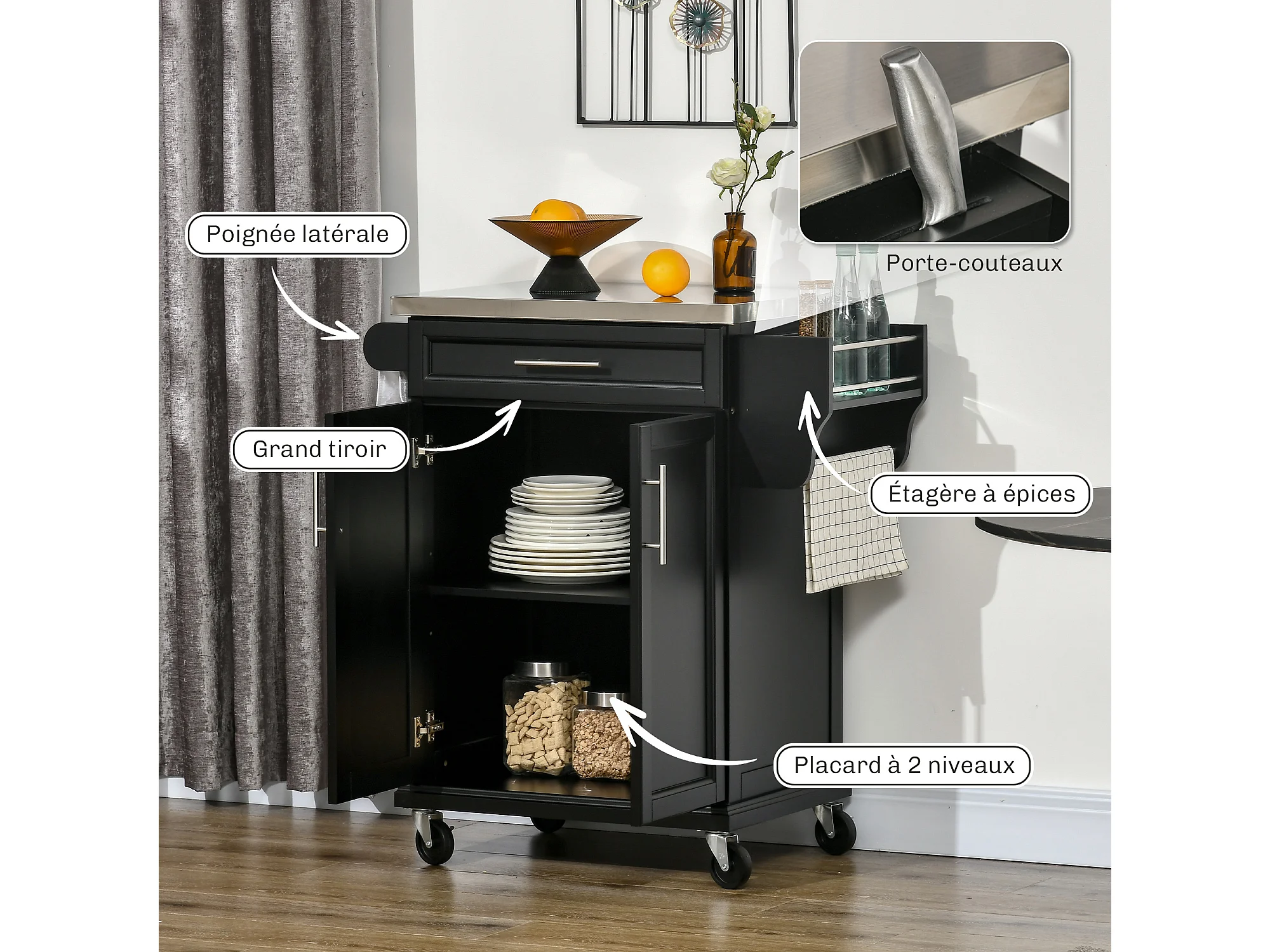 Chariot de Cuisine Desserte à Roulettes en Bois Noir - Design Élégant et Pratique