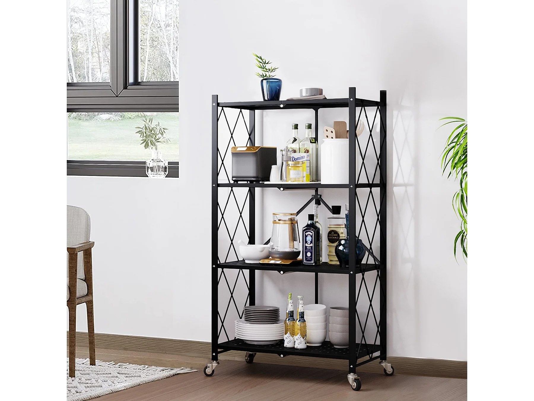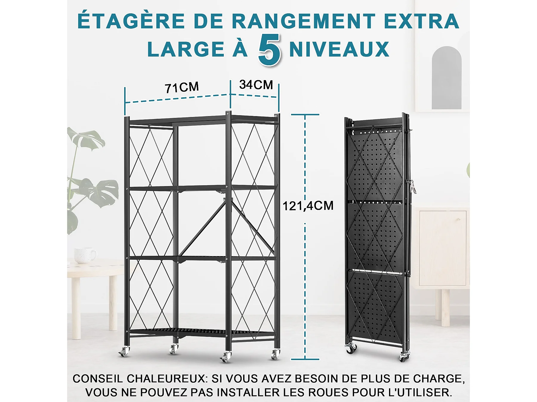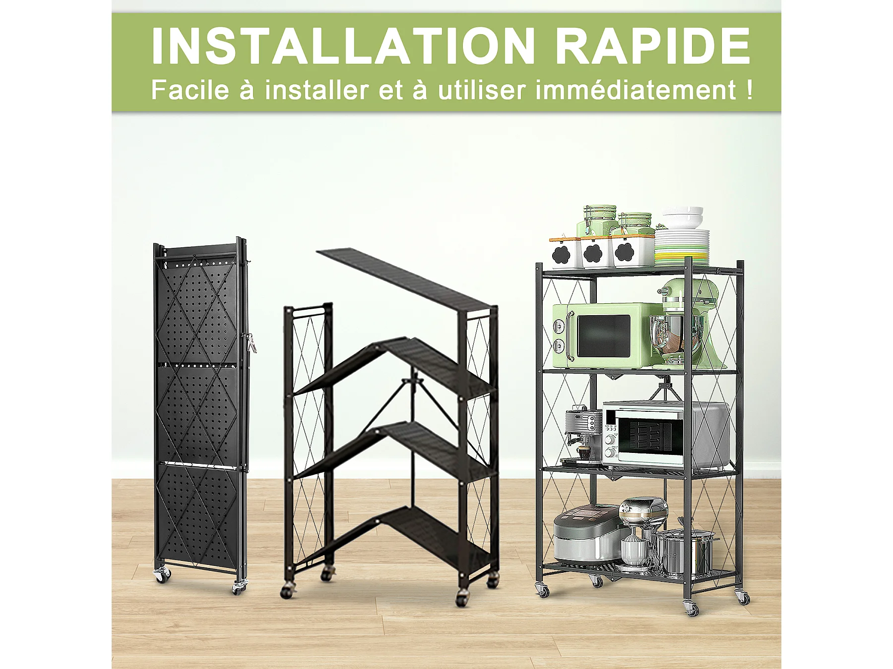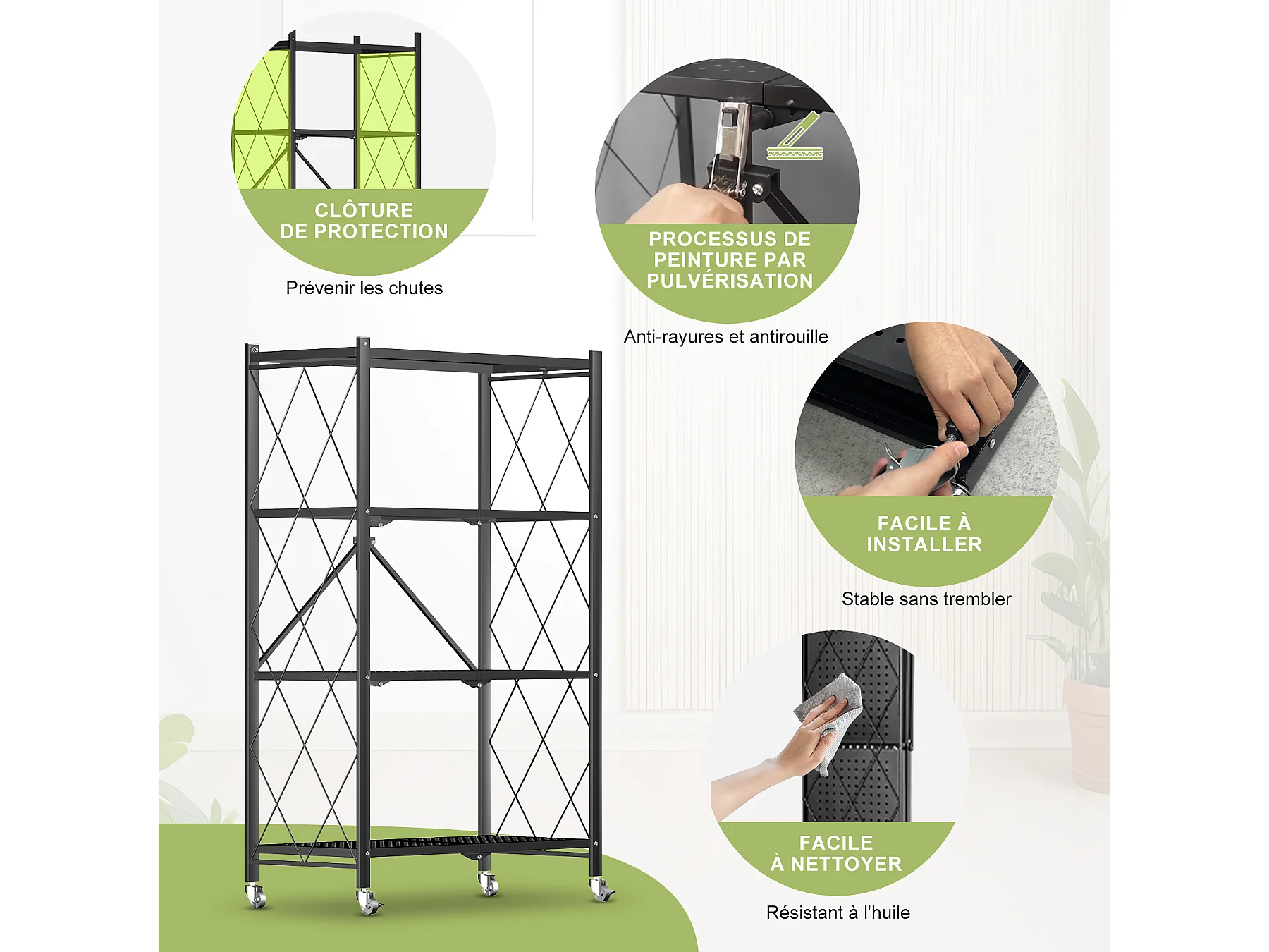 Étagère de Rangement Pliable 3 à 4 Niveaux,Étagère de rangement multifonctionnel,Étagère à roulettes,71*34*121,40cm,Noir