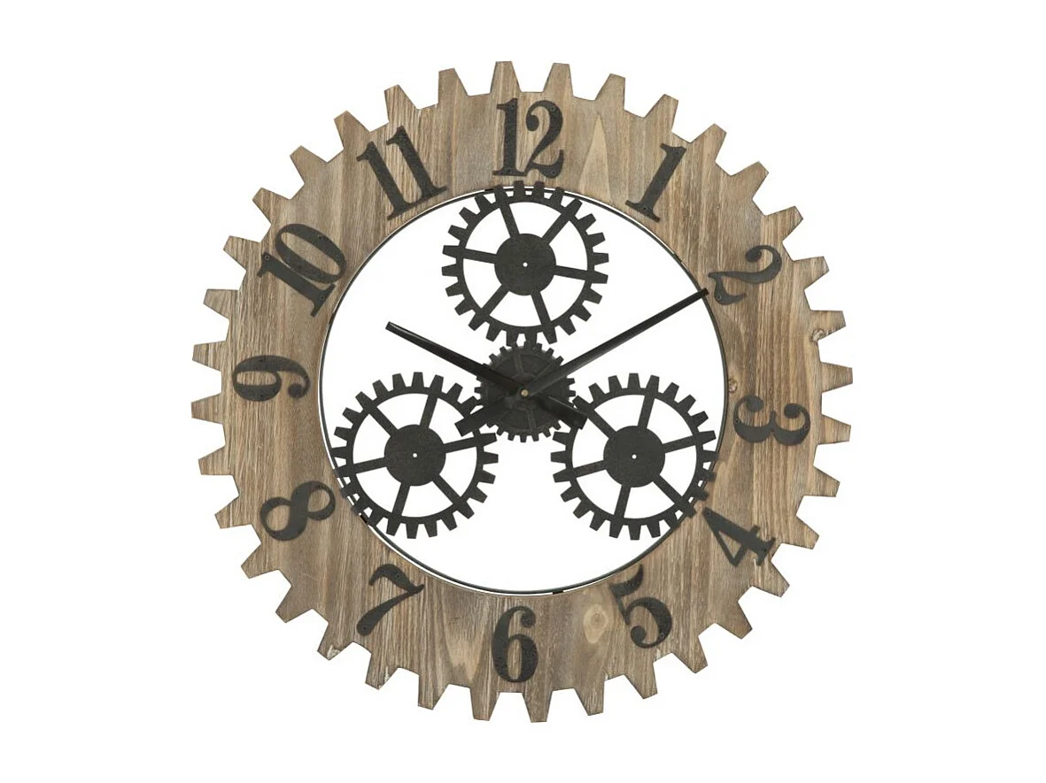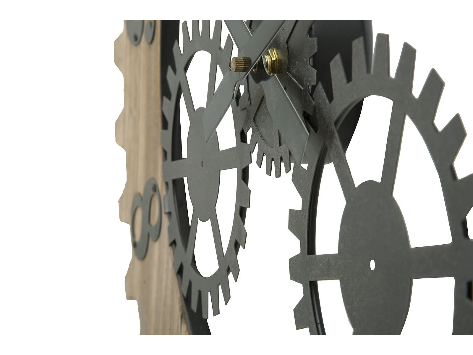 Horloge Murale Engrenage "Plus" 60cm Naturel & Noir