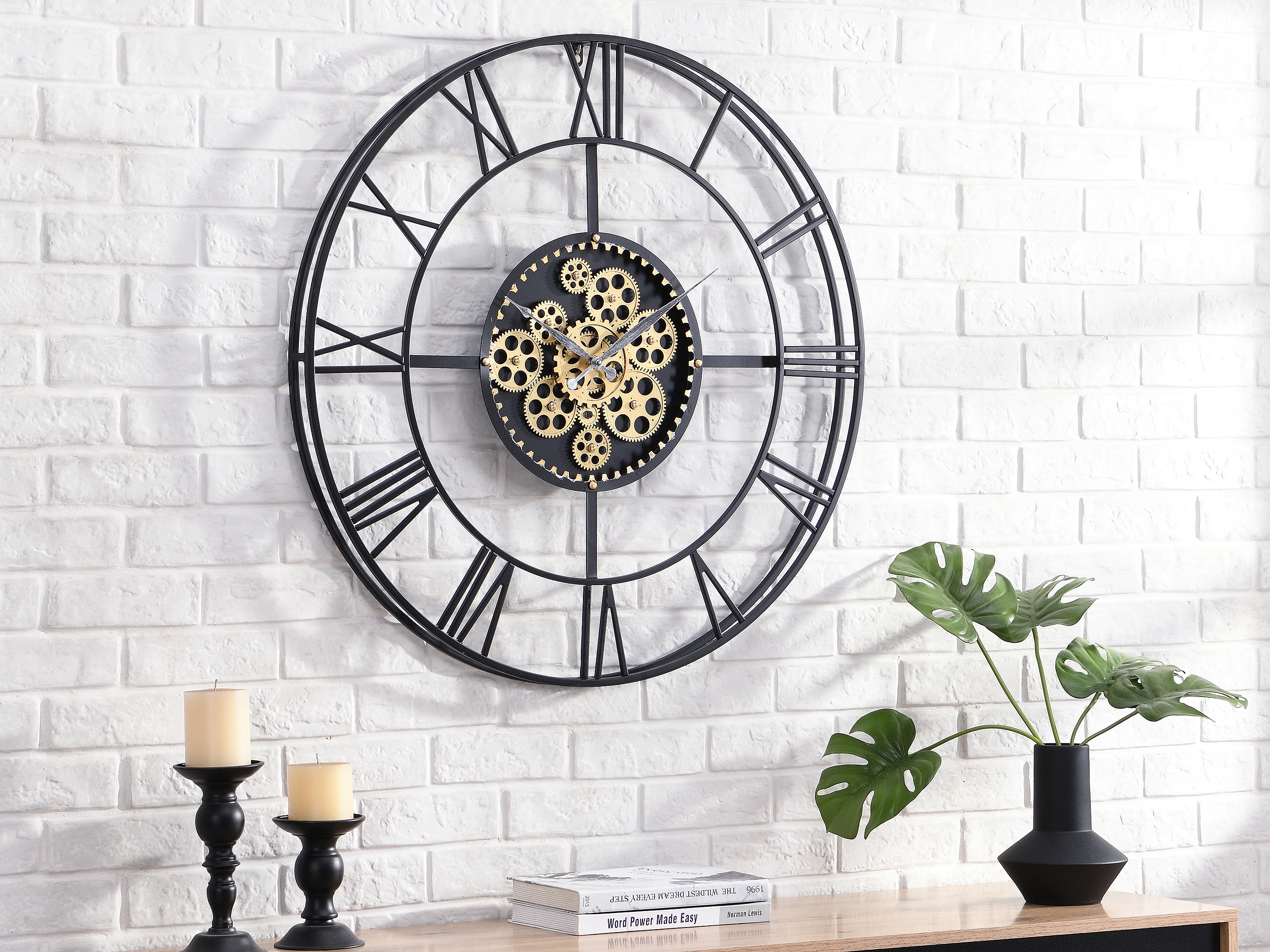 Horloge murale industrielle - D. 80 cm - Métal - Noir et doré - KARIAL