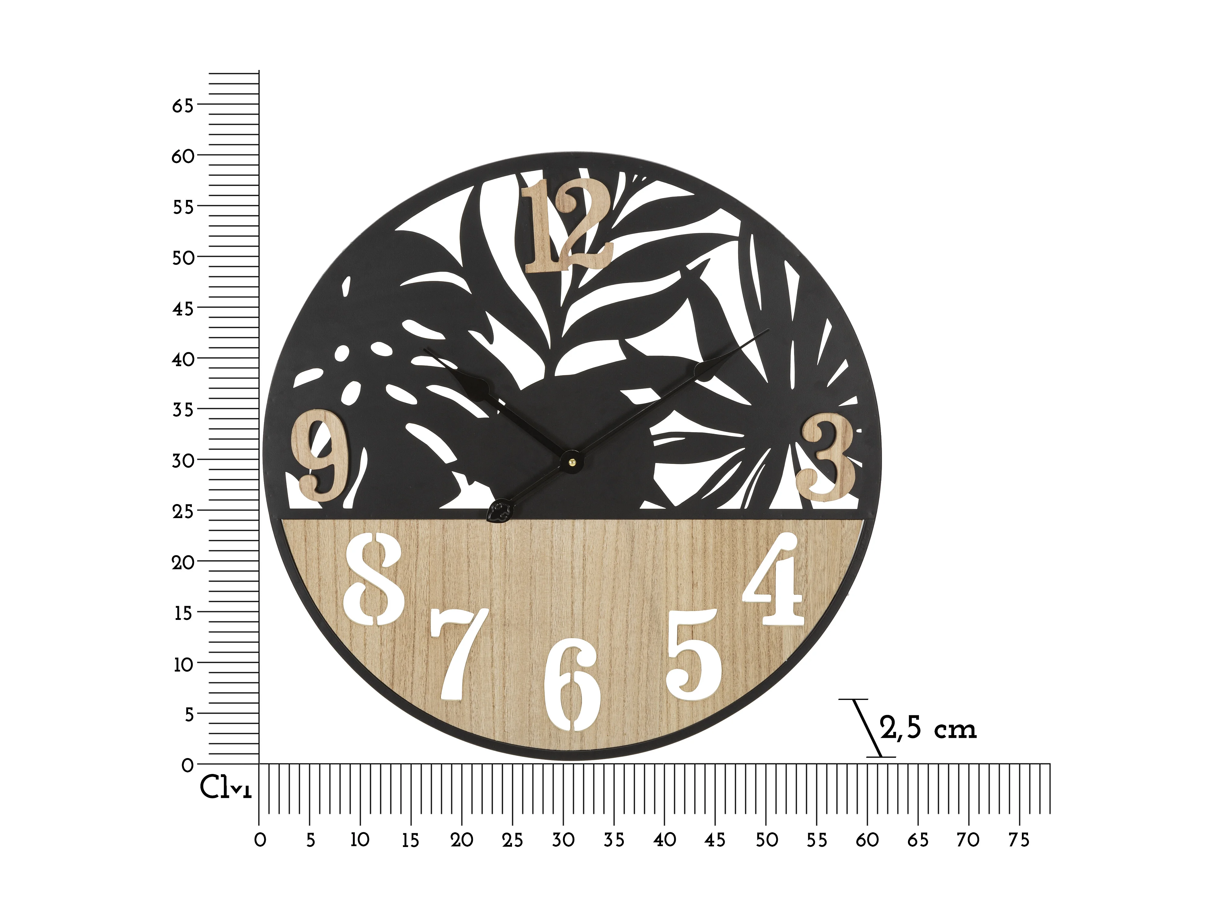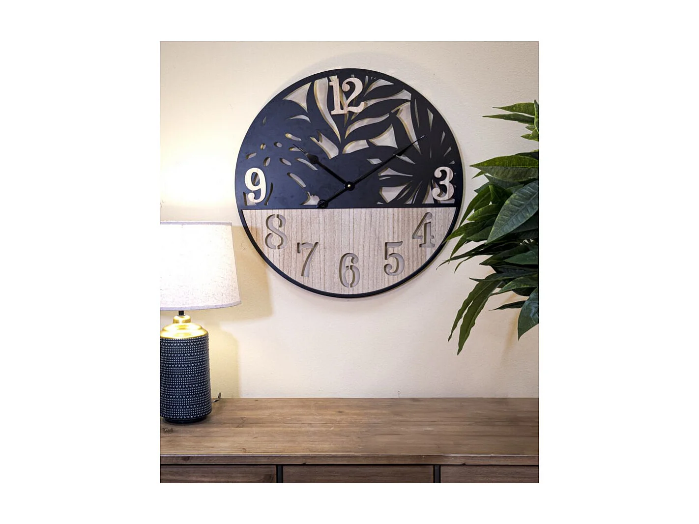 Horloge Murale en Métal "Palm" 60cm Naturel & Noir