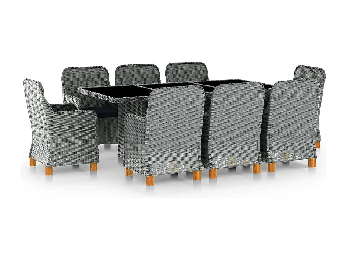 Hugo Ensemble à manger de jardin coussins 9pcs Résine tressée Gris