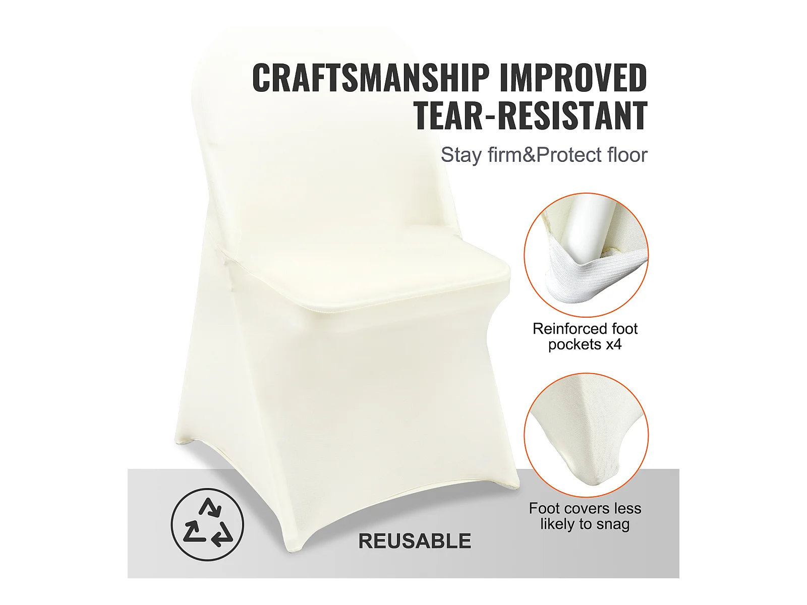 Housses de Chaises Pliantes en Élasthanne Extensible Blanc SucceBuy, Lot de 100 pour Salle à Manger de Mariage