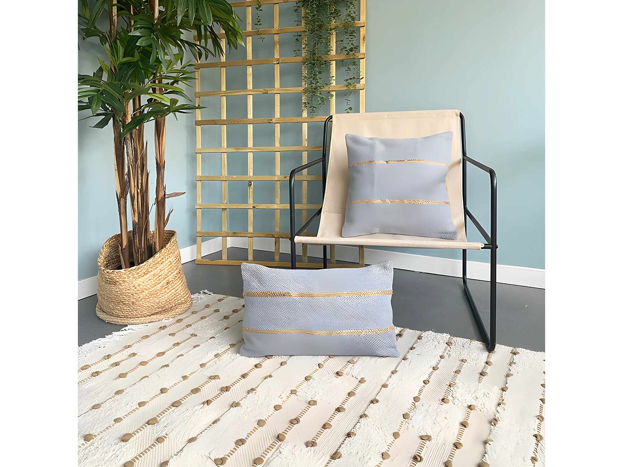 Housse de Coussin en Coton et Jute Tasunka 45x45 Gris