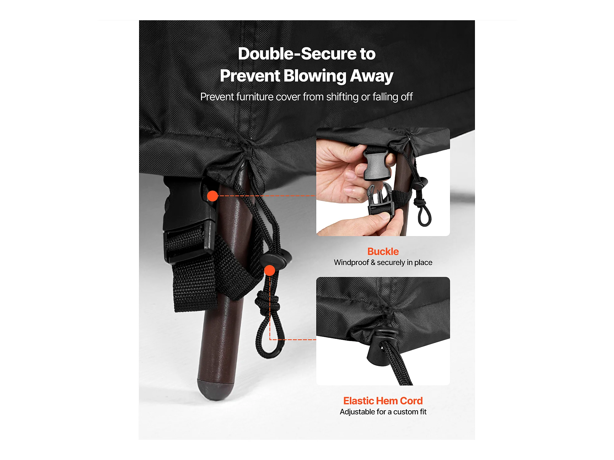 Housse de Meubles de Jardin SucceBuy, 279x213x71 cm, Bâche de Protection pour Mobiliers d’Extérieur en 420D Imperméable et Résistante, Toutes Saisons, Noir