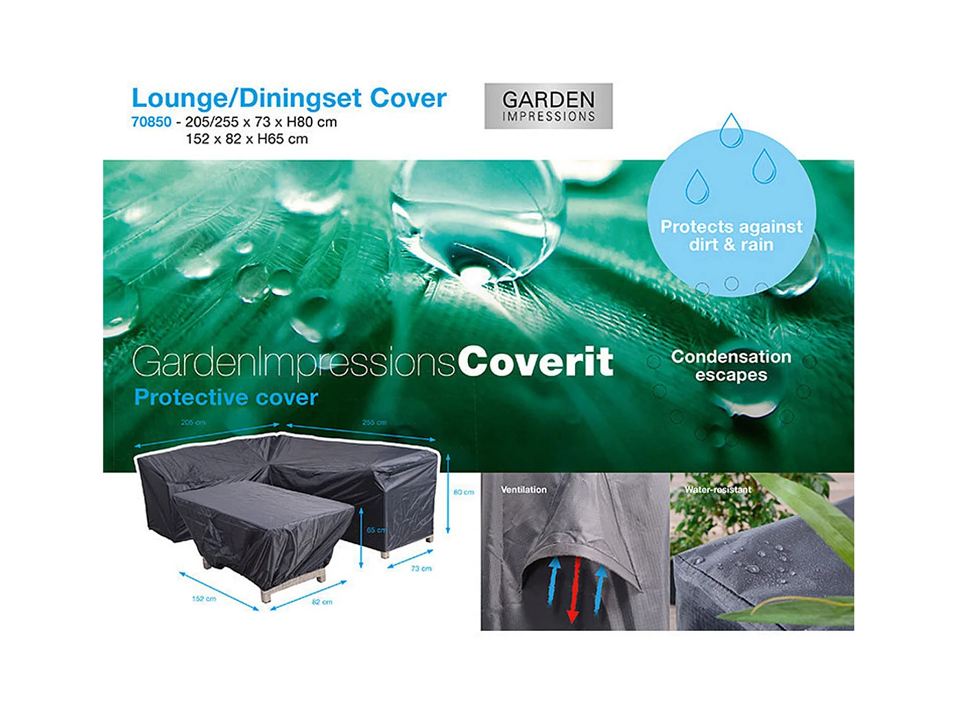 Housse de protection salon de jardin salle à manger Garden Impression 205/255x73x80 et 152x82x65cm