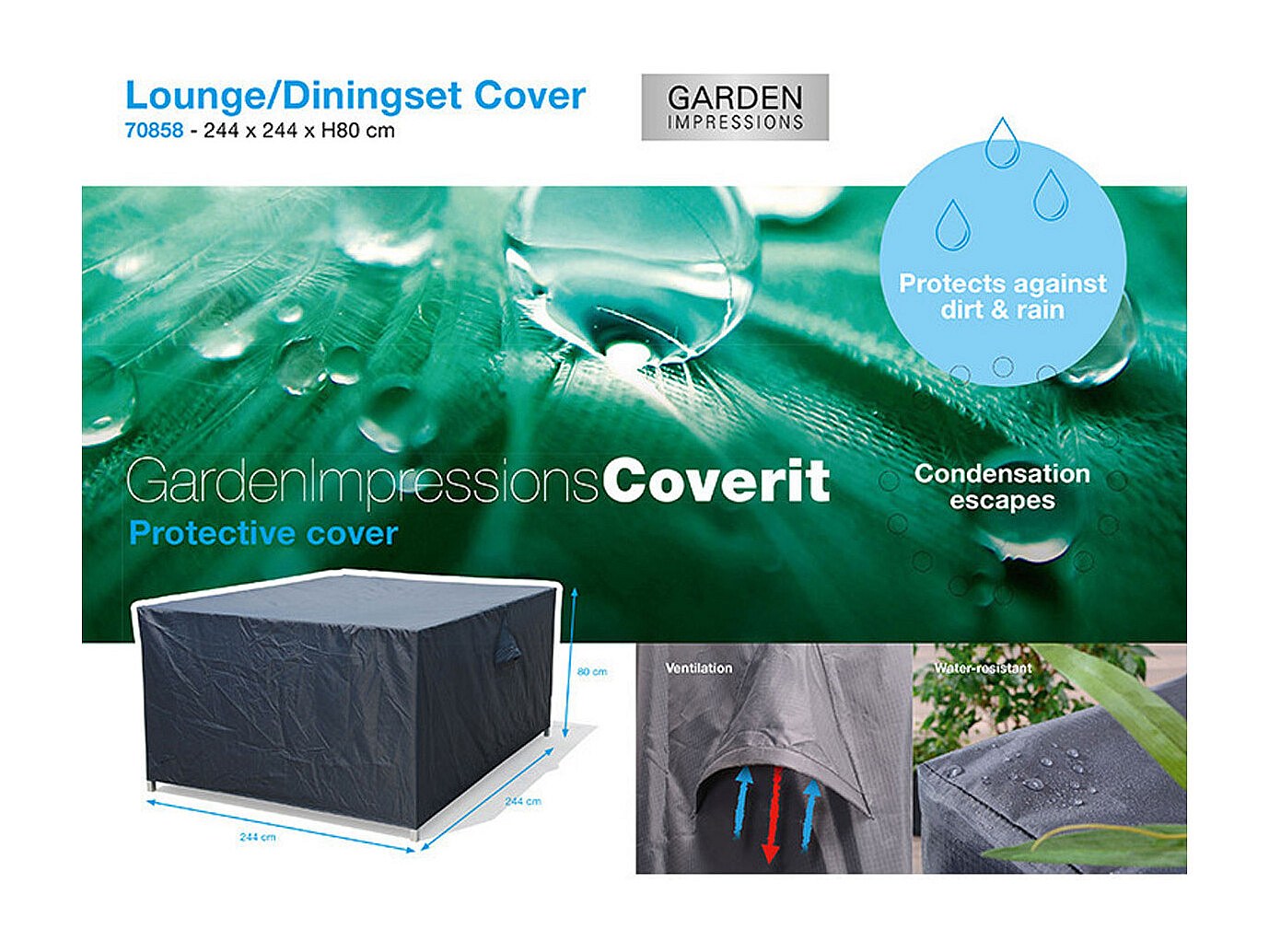 Housse de protection salon de jardin salle à manger Garden Impressions 244x244xh80cm