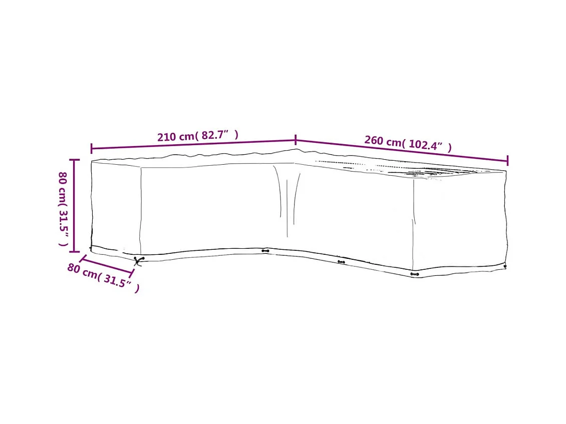 Housse de salon de jardin en forme de L 16 ?illets 210x260x80cm