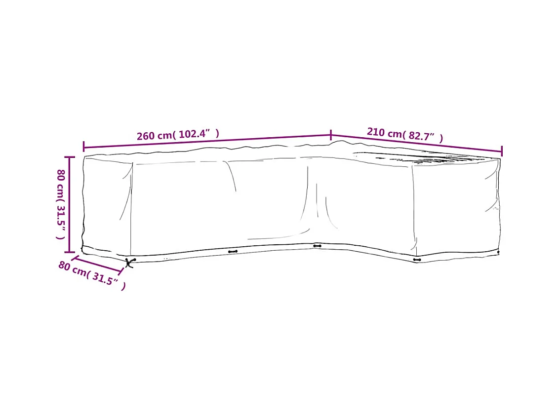 Housse de salon de jardin en forme de L 16 ?illets 260x210x80cm