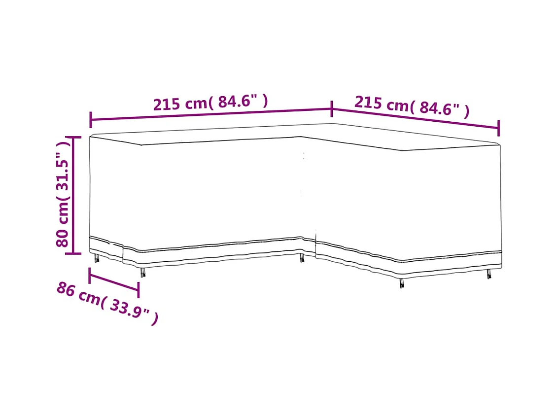 Housse pour canapé en forme de L noir 215x215x80 cm oxford 420D