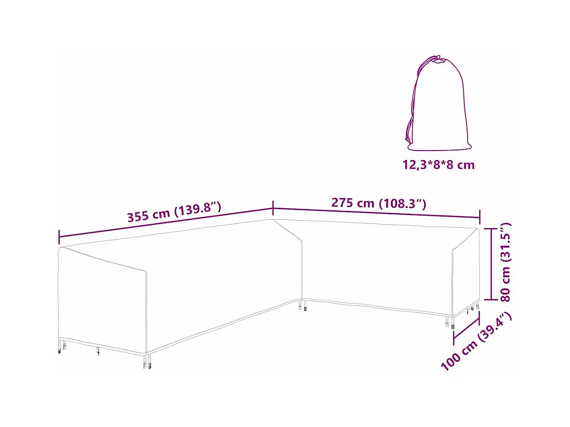 Housse pour mobilier d'extérieur 355 x 275 x 80 cm