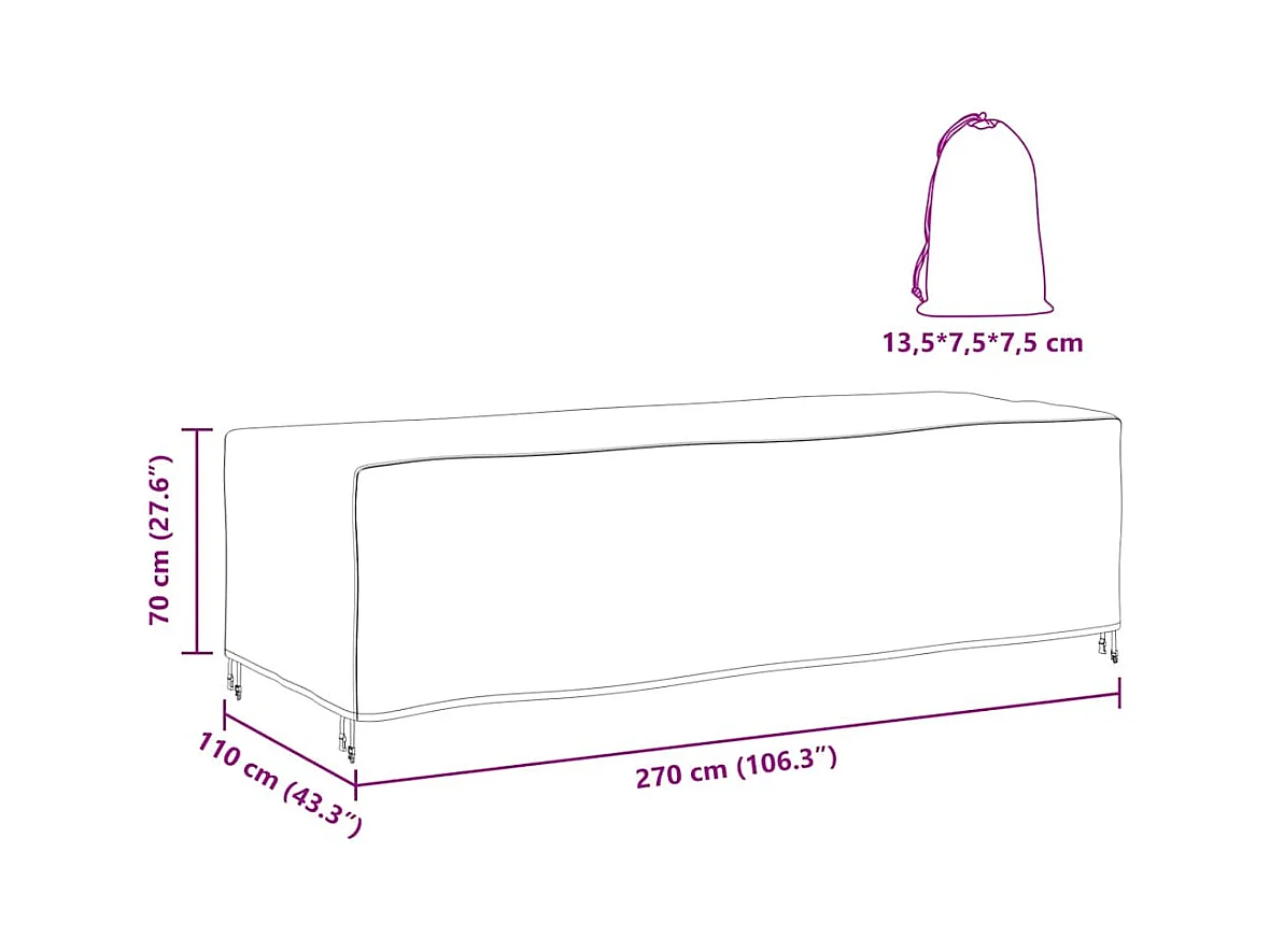 Housse pour mobilier d'extérieur Noir 270 x 110 x 70 cm 210D