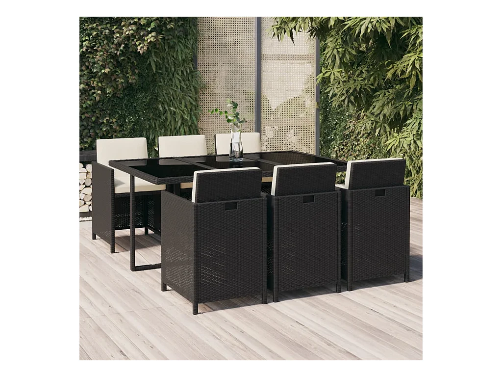 Tijn Ensemble à manger de jardin coussins 7pcs Noir Résine tressée