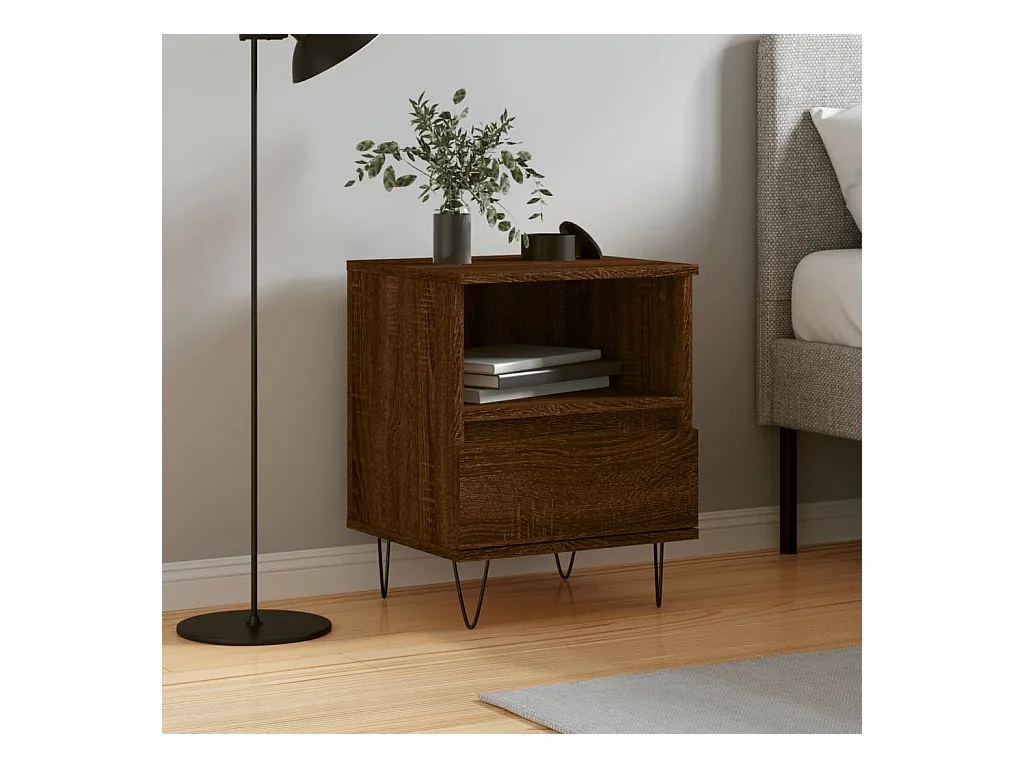 Orvieto Table de chevet avec pieds en métal Chêne fumé 40x35x50 cm