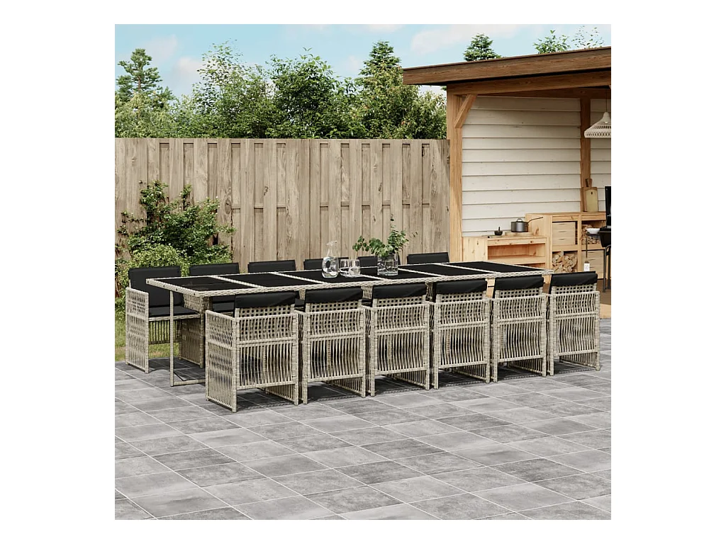 Ilo Ensemble à manger de jardin et coussins 13 pcs gris clair rotin