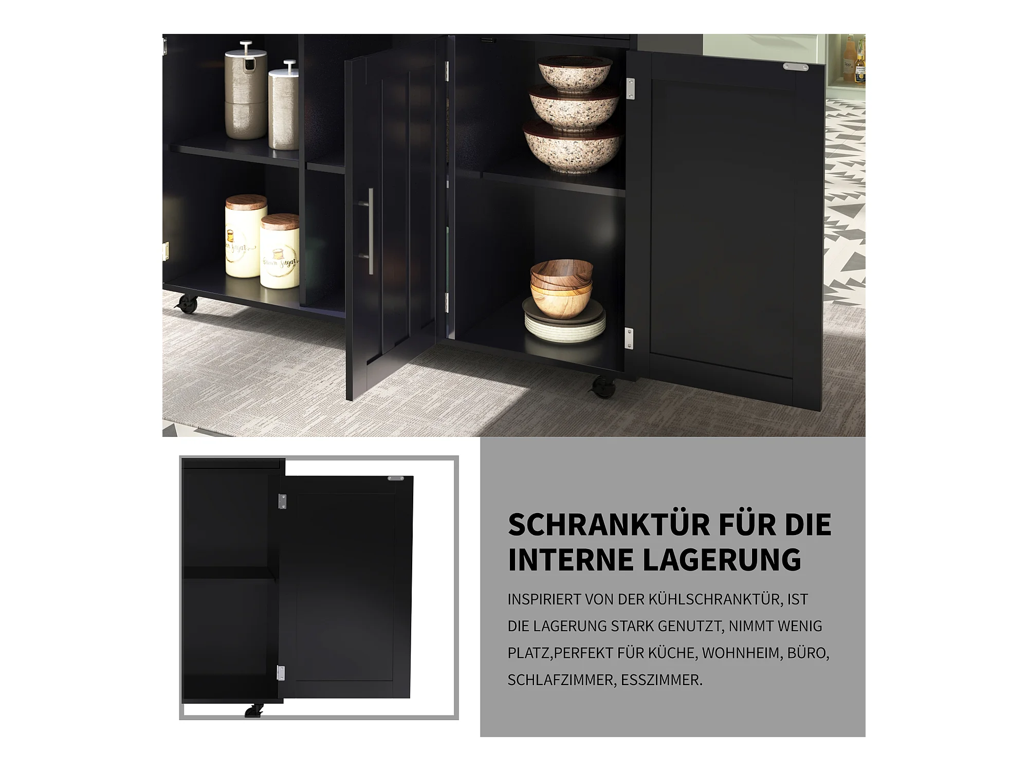 Îlot central à roulettes - 130 x 45/75 x 92 cm - desserte extensible + 3 portes - MDF - noir