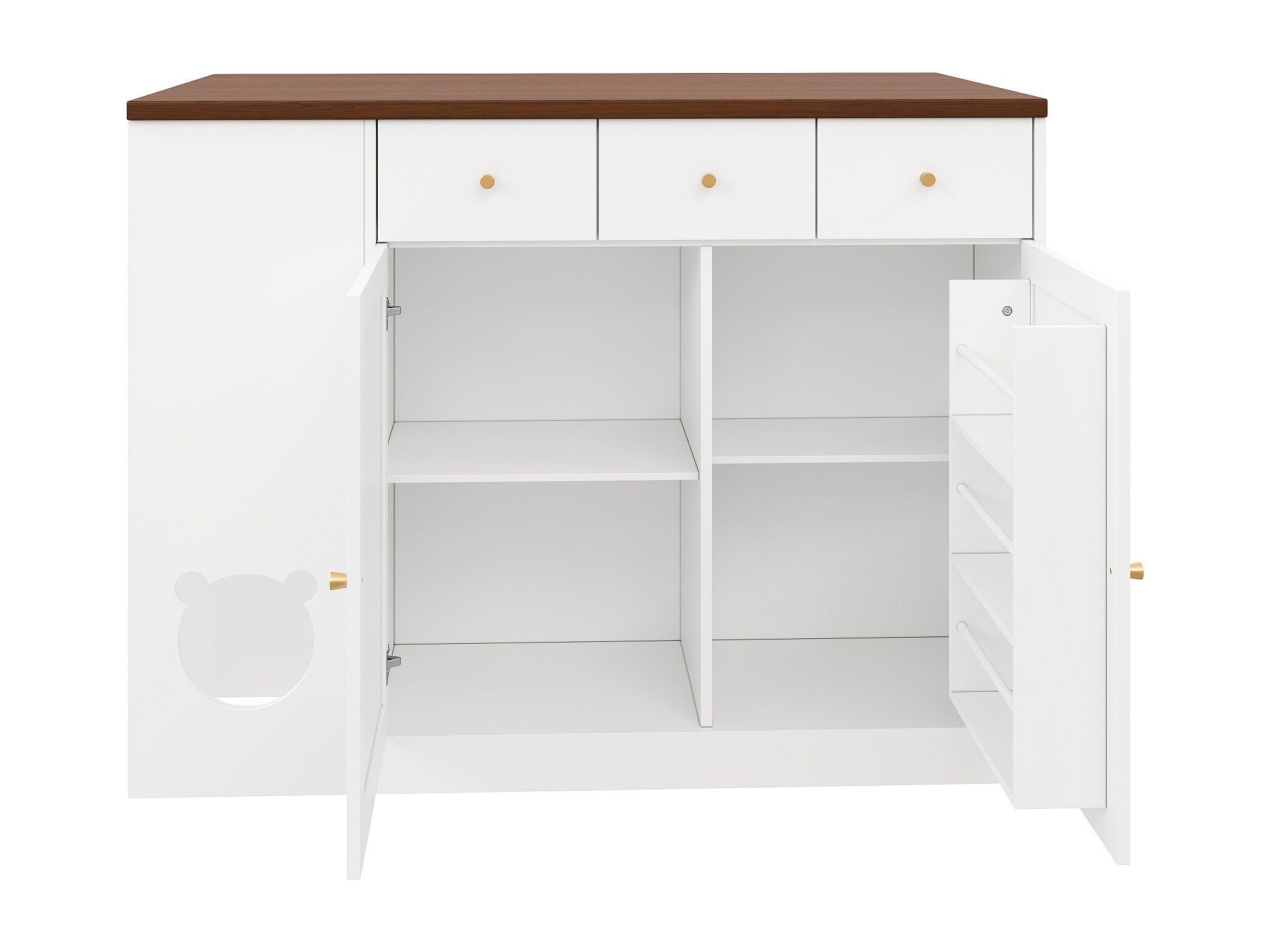 Ilot central de cuisine - chariot à roulette avec plateau extensible - 3 tiroirs et 2 portes - Blanc