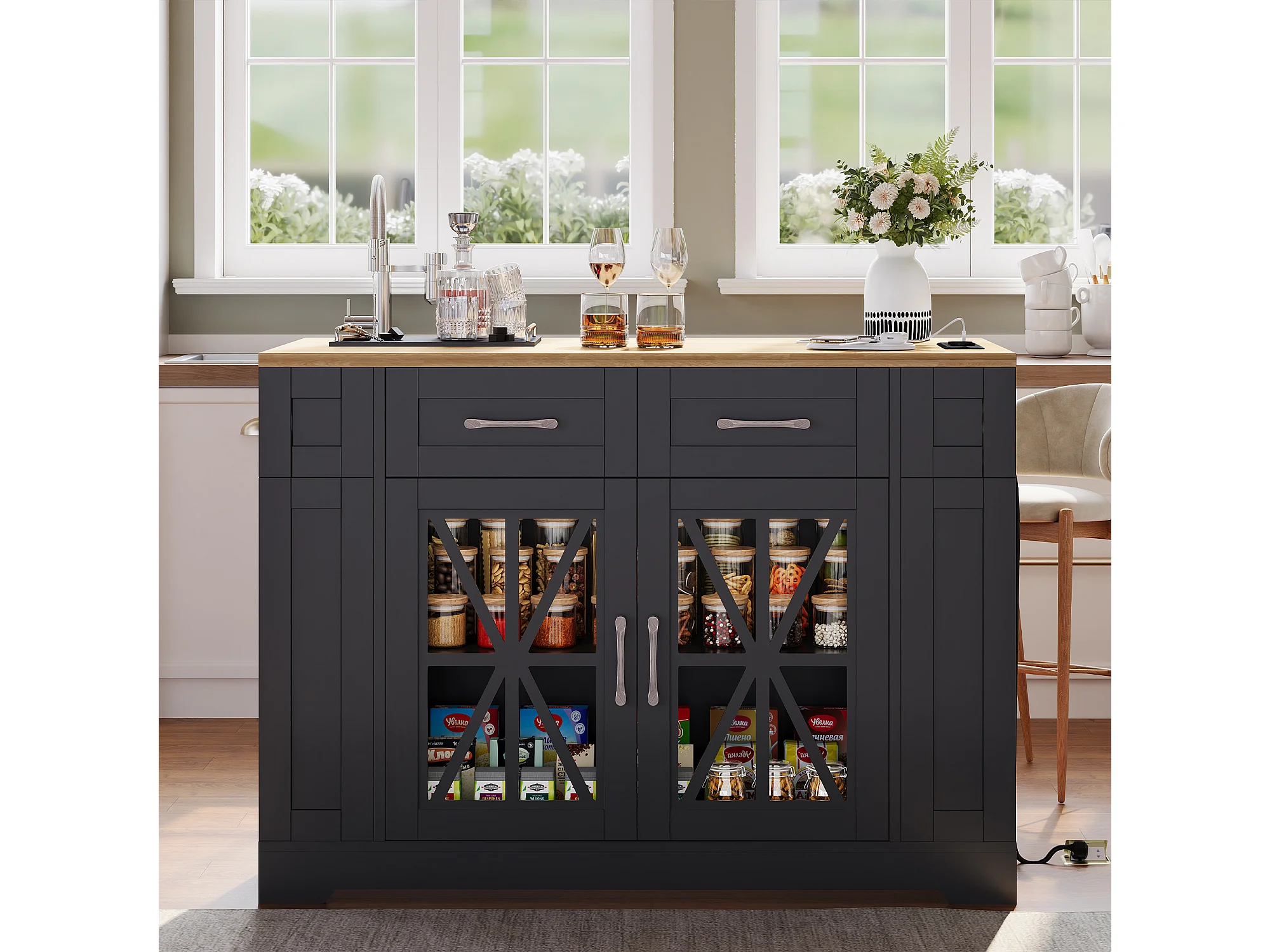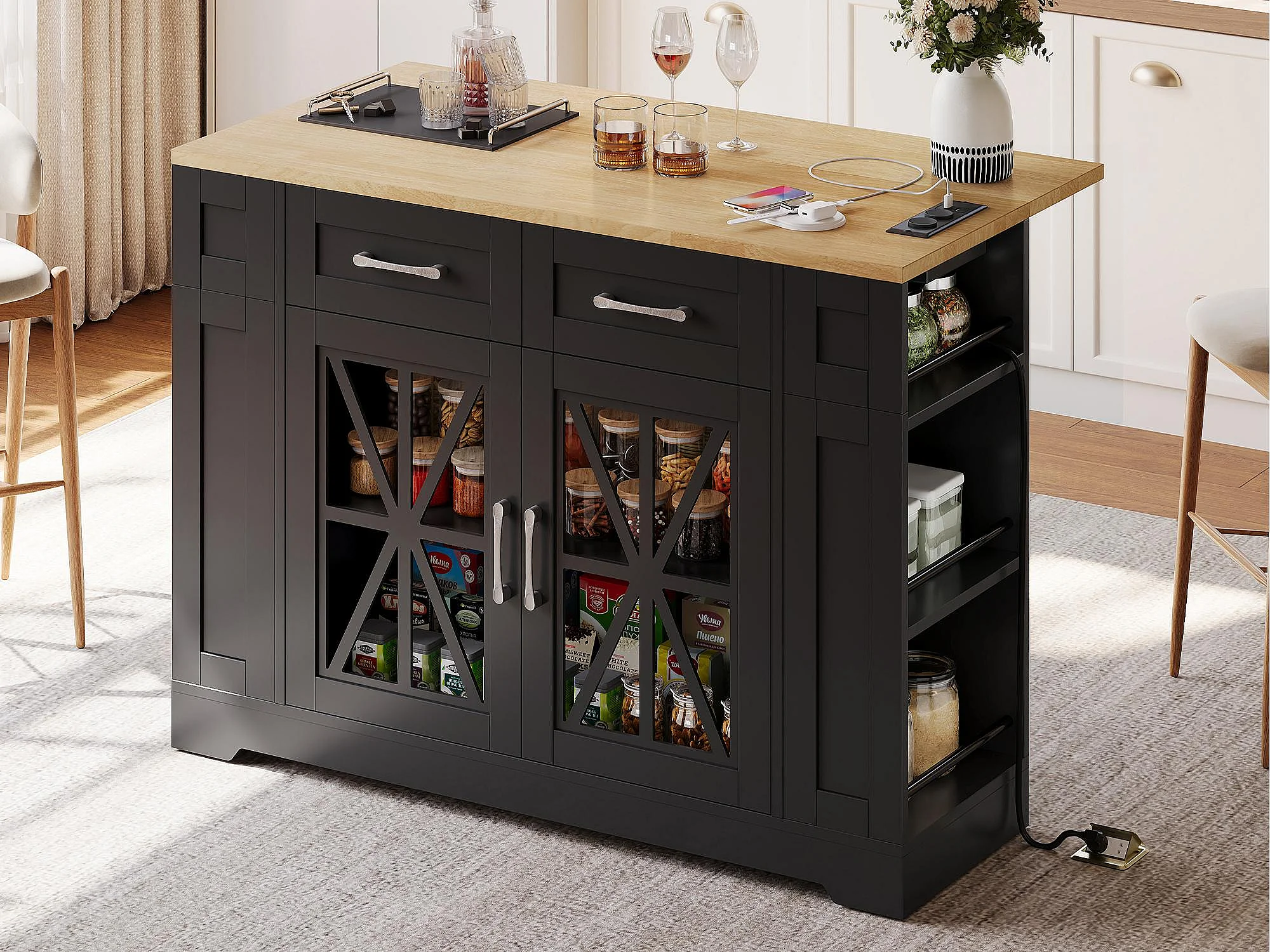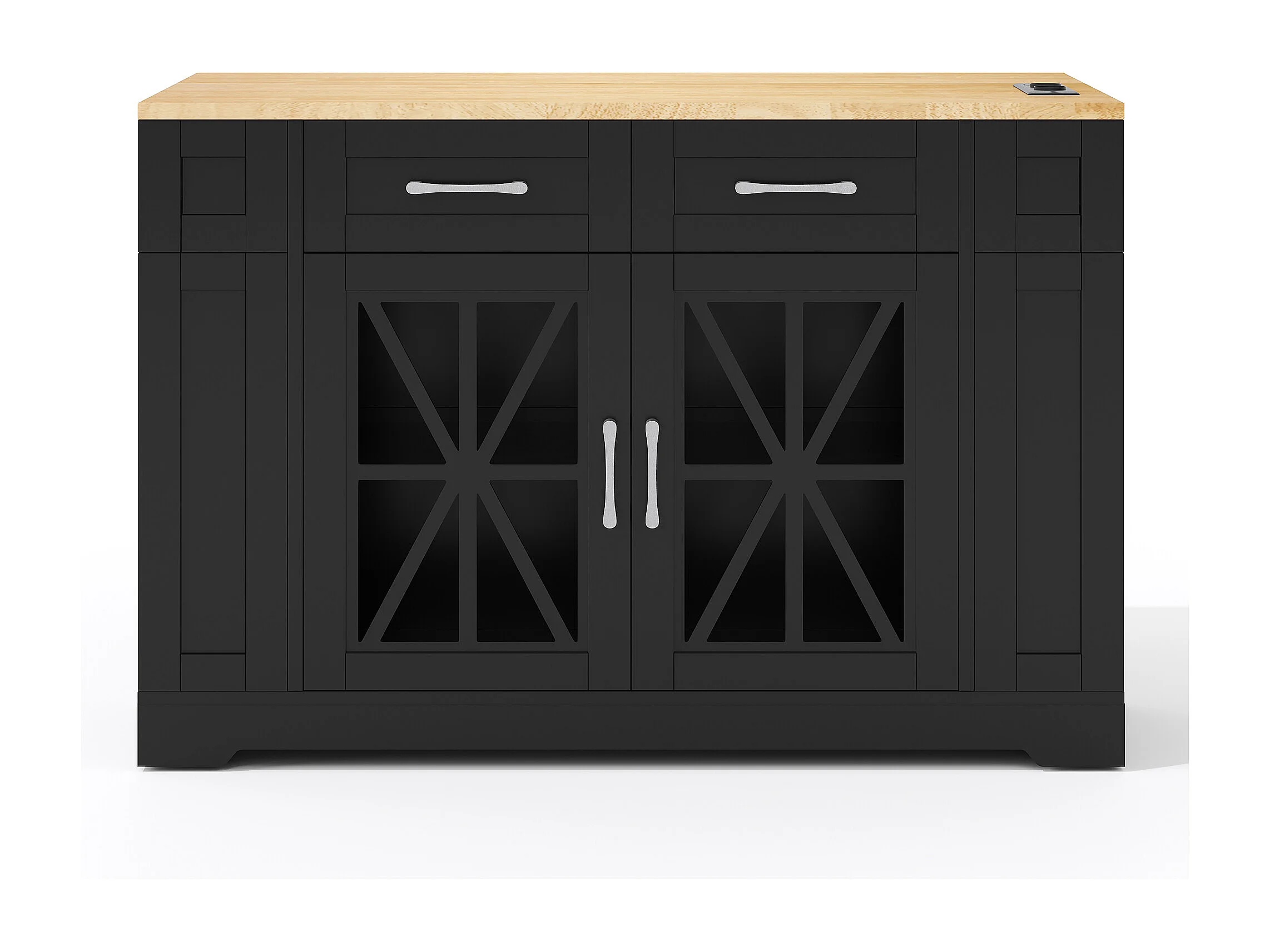 Ilot central de cuisine mobile - avec USB - plateau extensible - 2 tiroirs et 2 portes - MDF - Noir