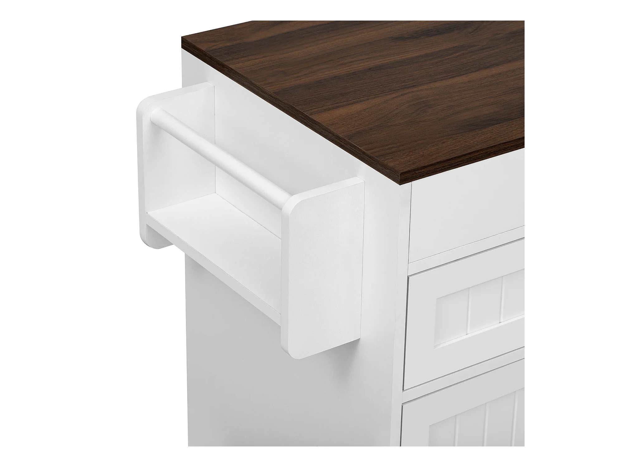 Desserte de cuisine blanc avec plateau rabattable - Îlot central avec 2 portes et 3 tiroirs - porte-serviettes et étagère à épices