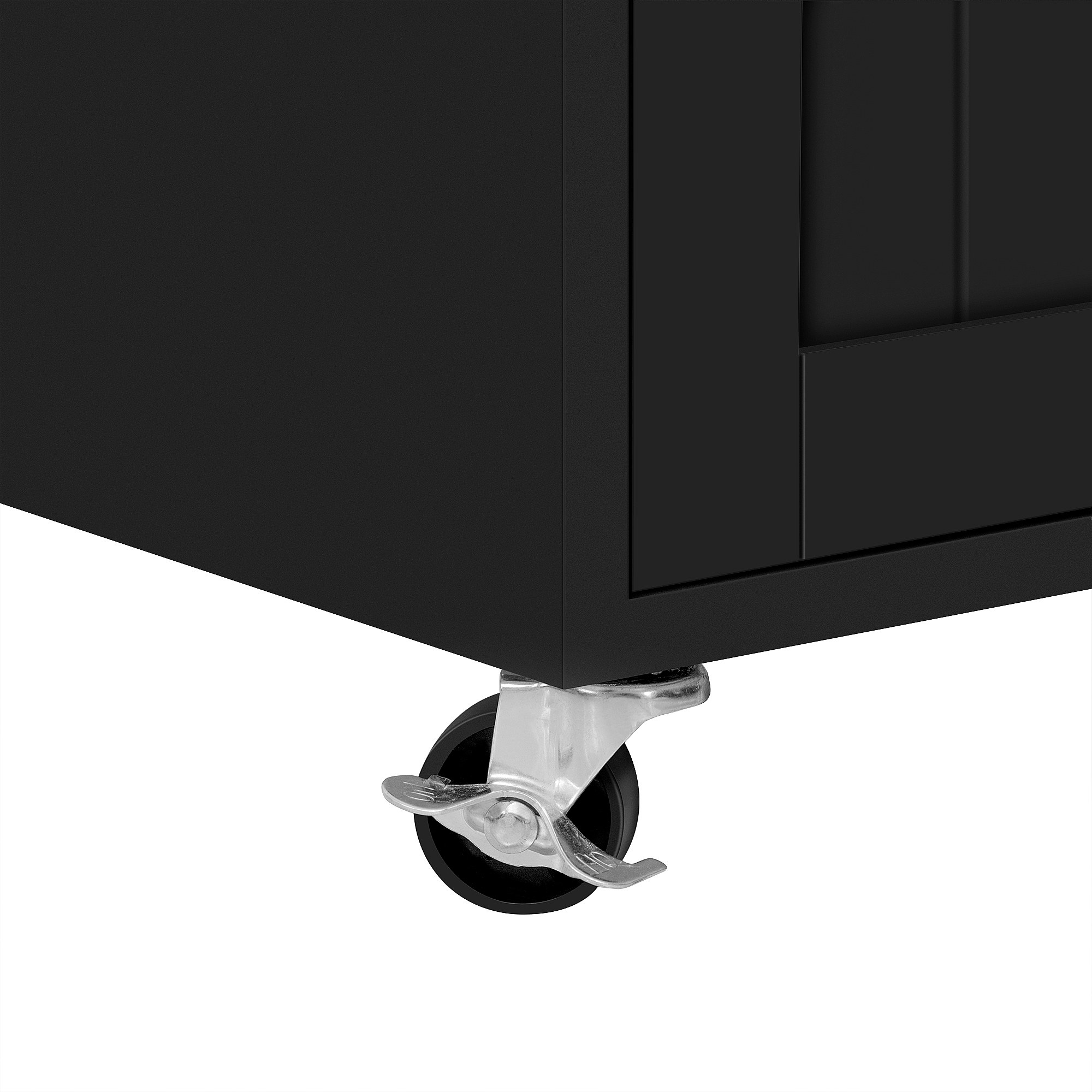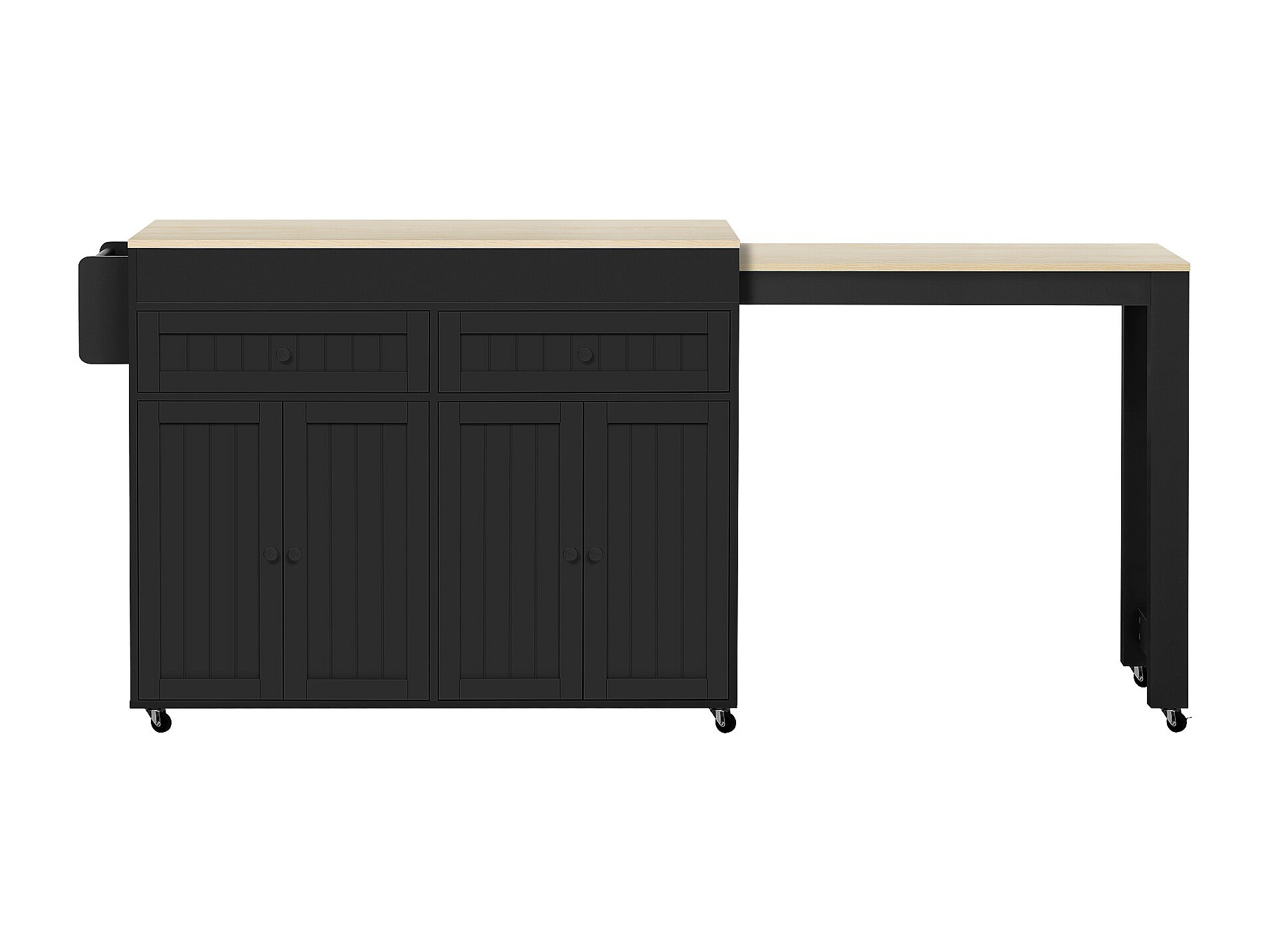 Îlot central de cuisine mobile noir - Desserte de cuisine avec 4 portes et 2 tiroirs - plateau extensibleen bois et étagère à épices