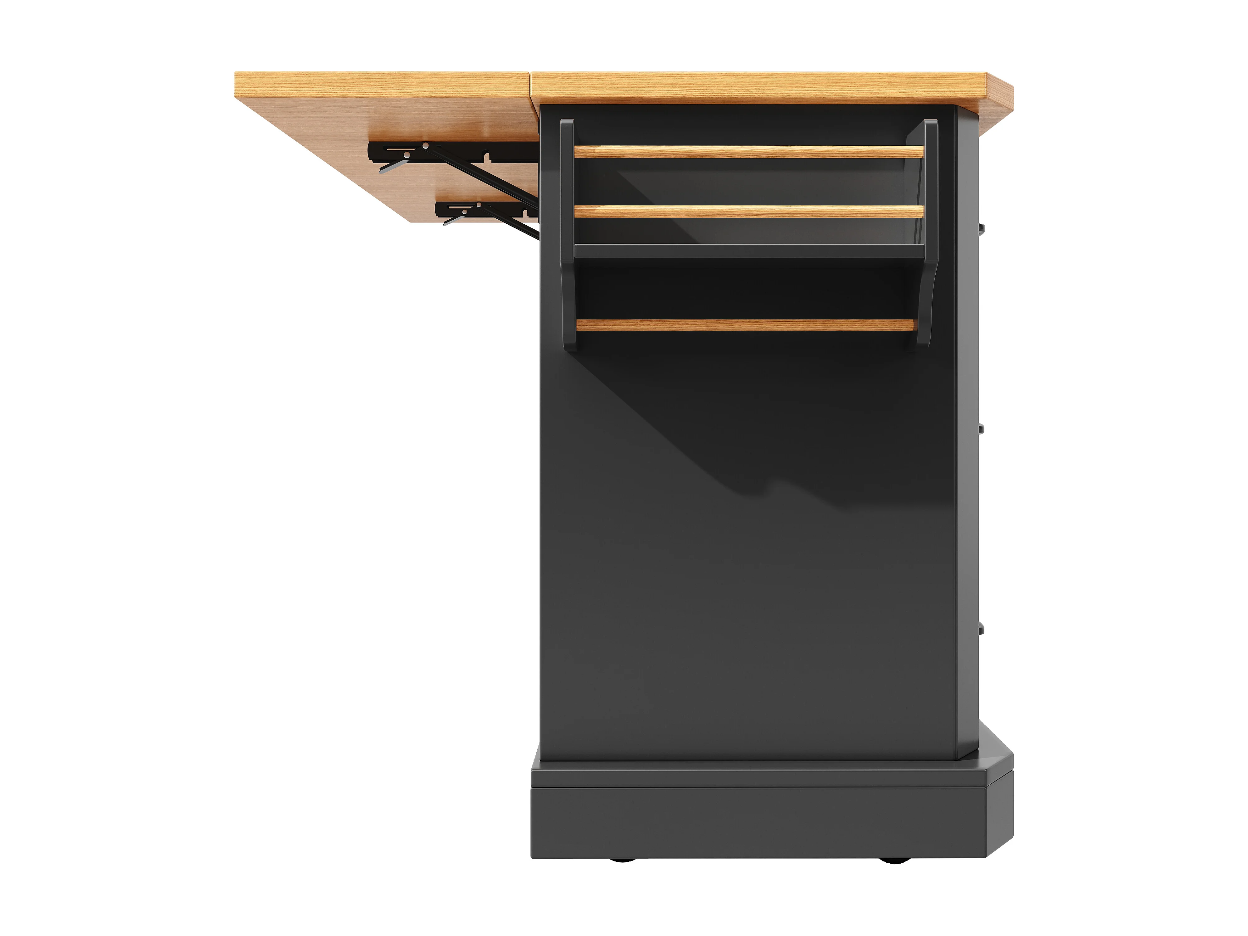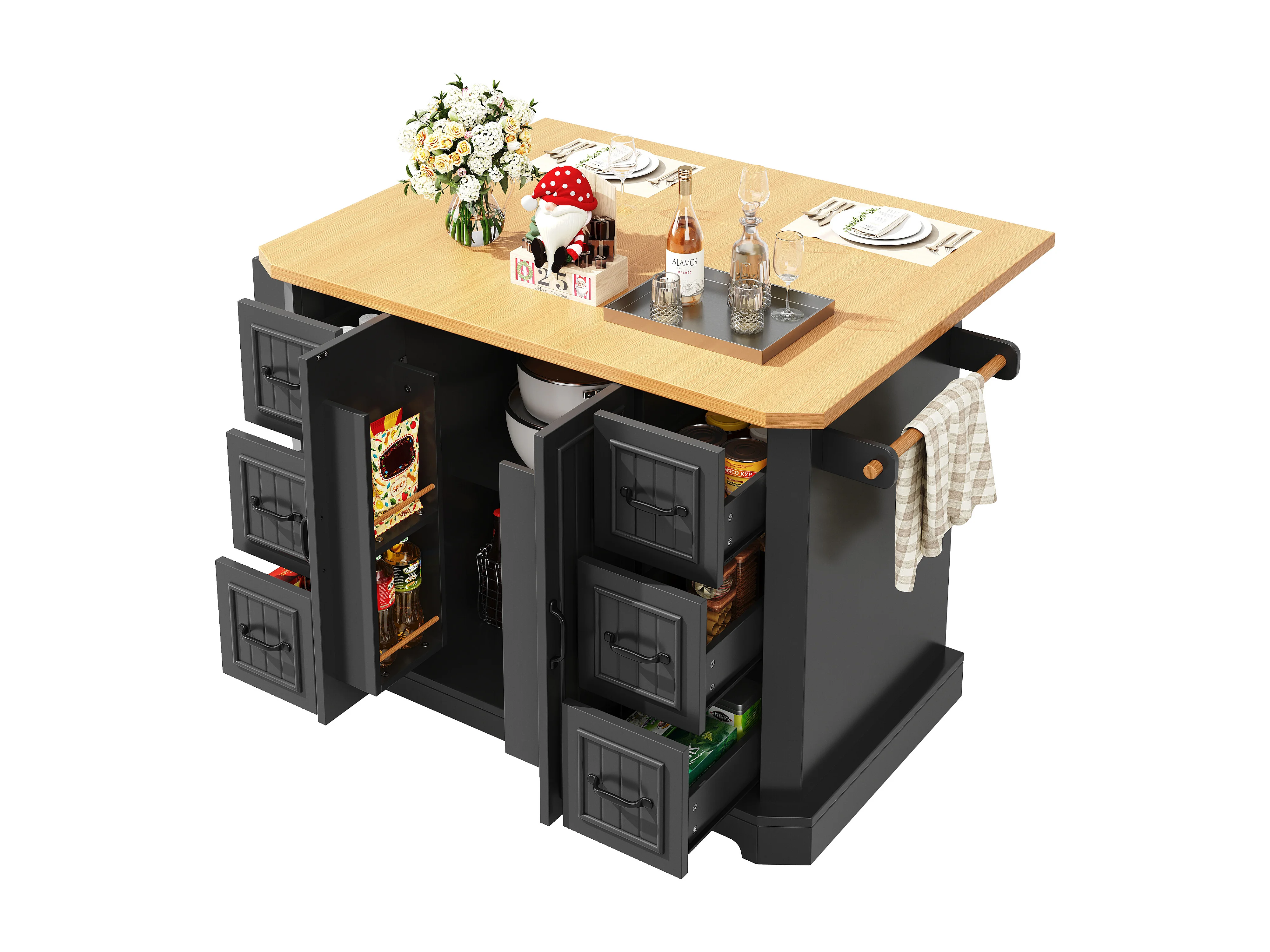 Ilot central de cuisine mobile - Plateau extensible - 120x75x91cm - 2 portes et 6 tiroirs - avec porte-serviettes - Noir