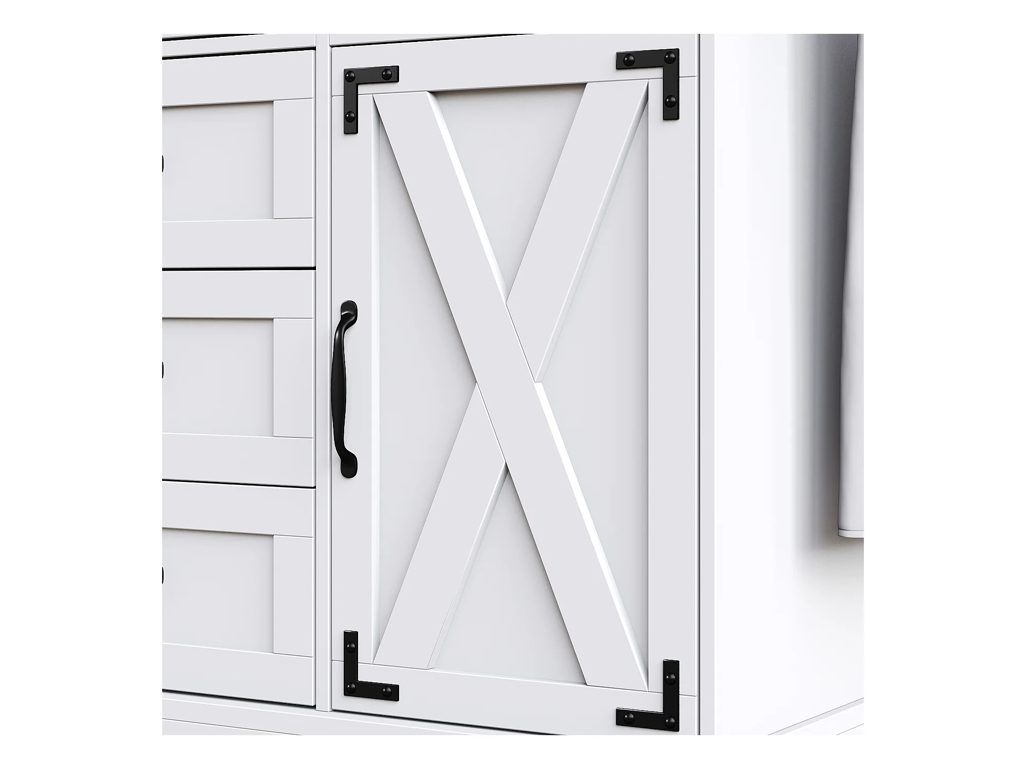 Îlot central avec plan de travail rabattable - 137 x 45/70 x 89.5 cm - avec 2 tiroirs + 3 portes - MDF - blanc