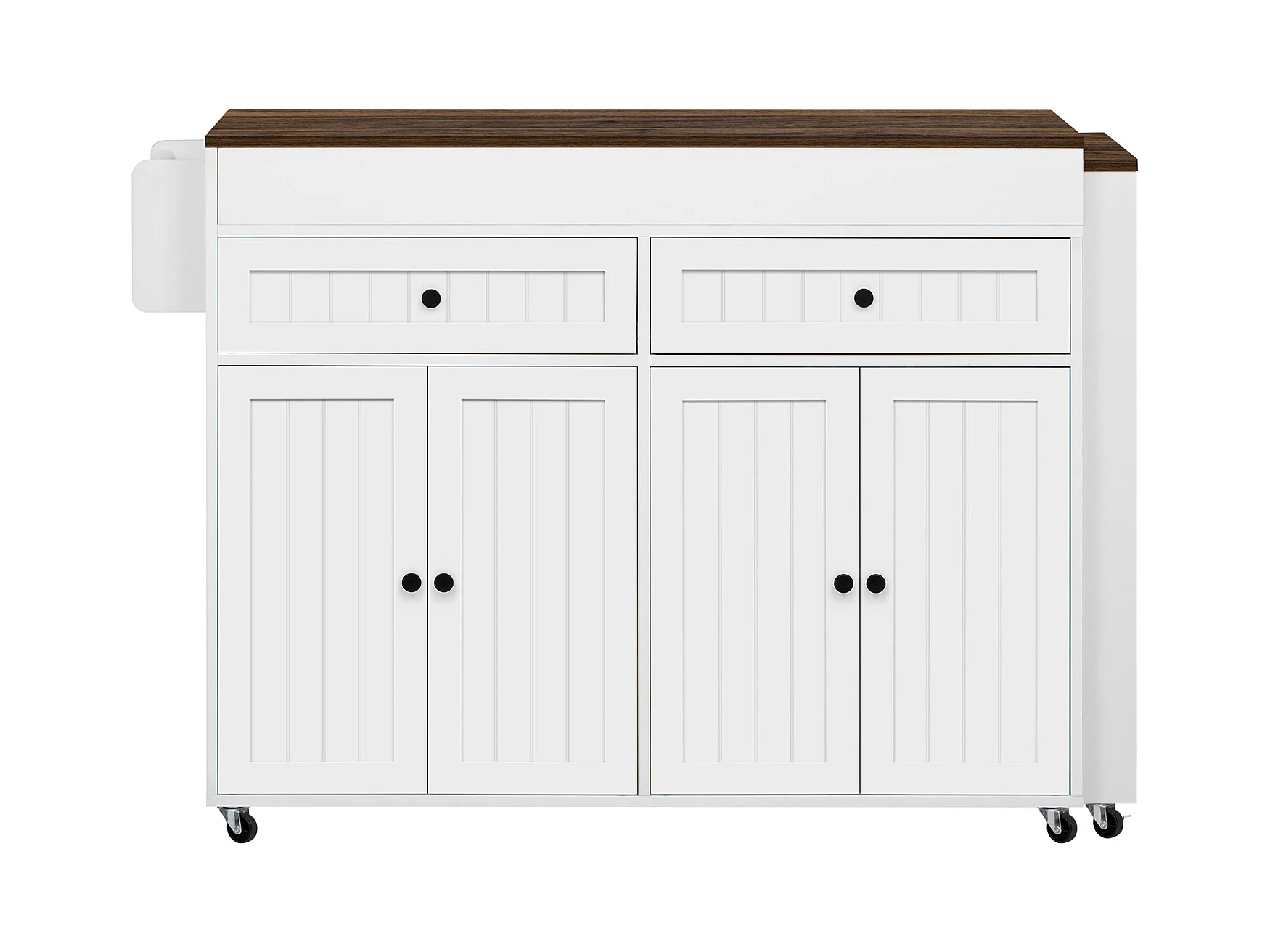 Îlot de cuisine mobile avec plan de travail rabattable - 120 x 45/70 x 89 cm - avec 2 portes + 2 tiroirs - MDF - blanc