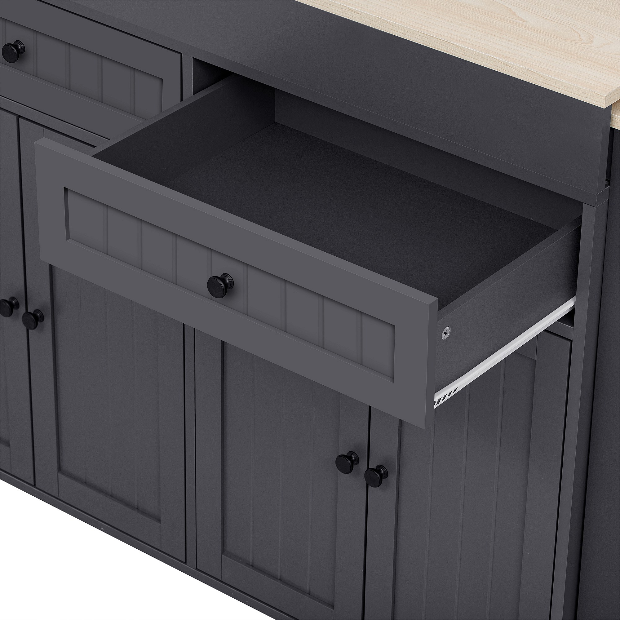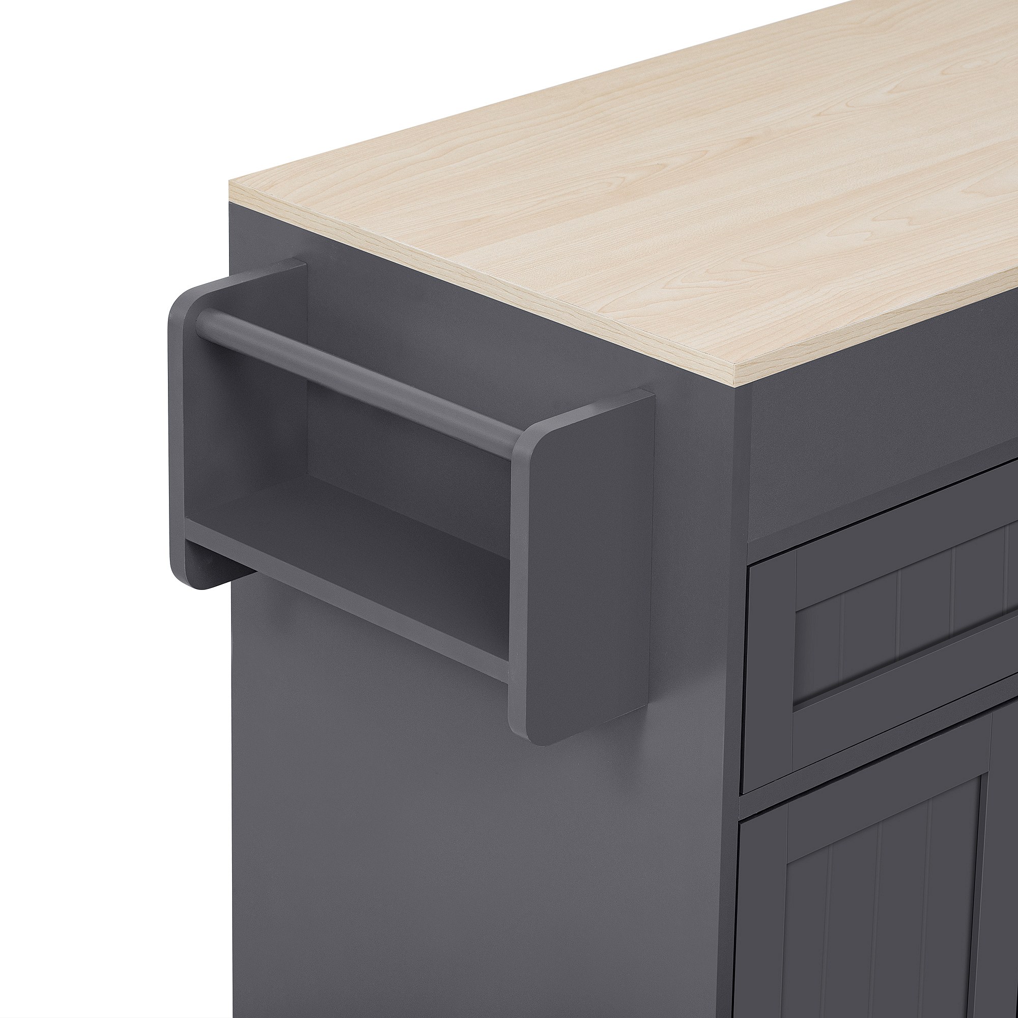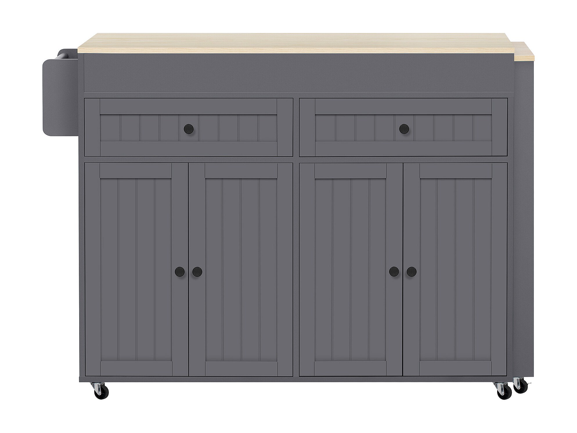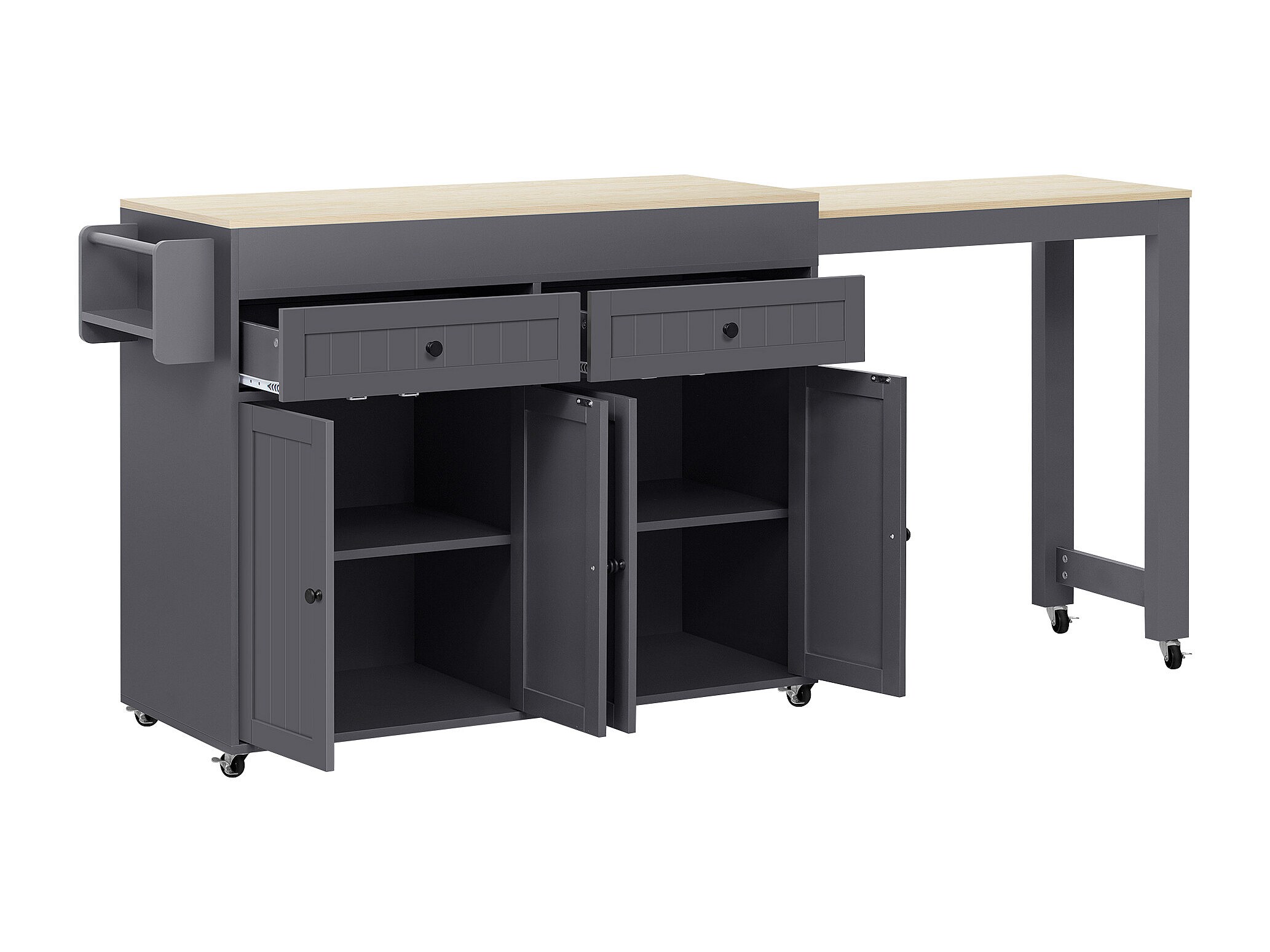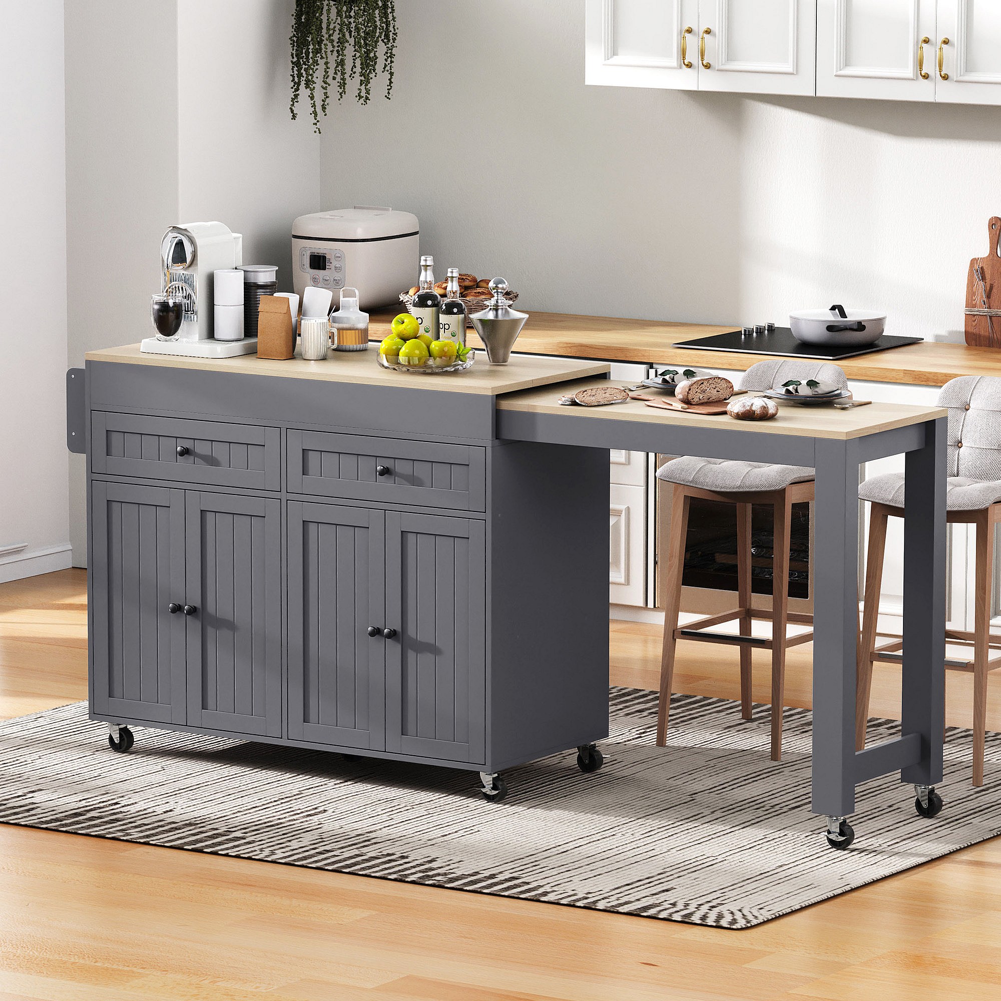 Îlot cuisine mobile avec plateau rétractable, 4 portes et 2 tiroirs de rangement - gris et naturel
