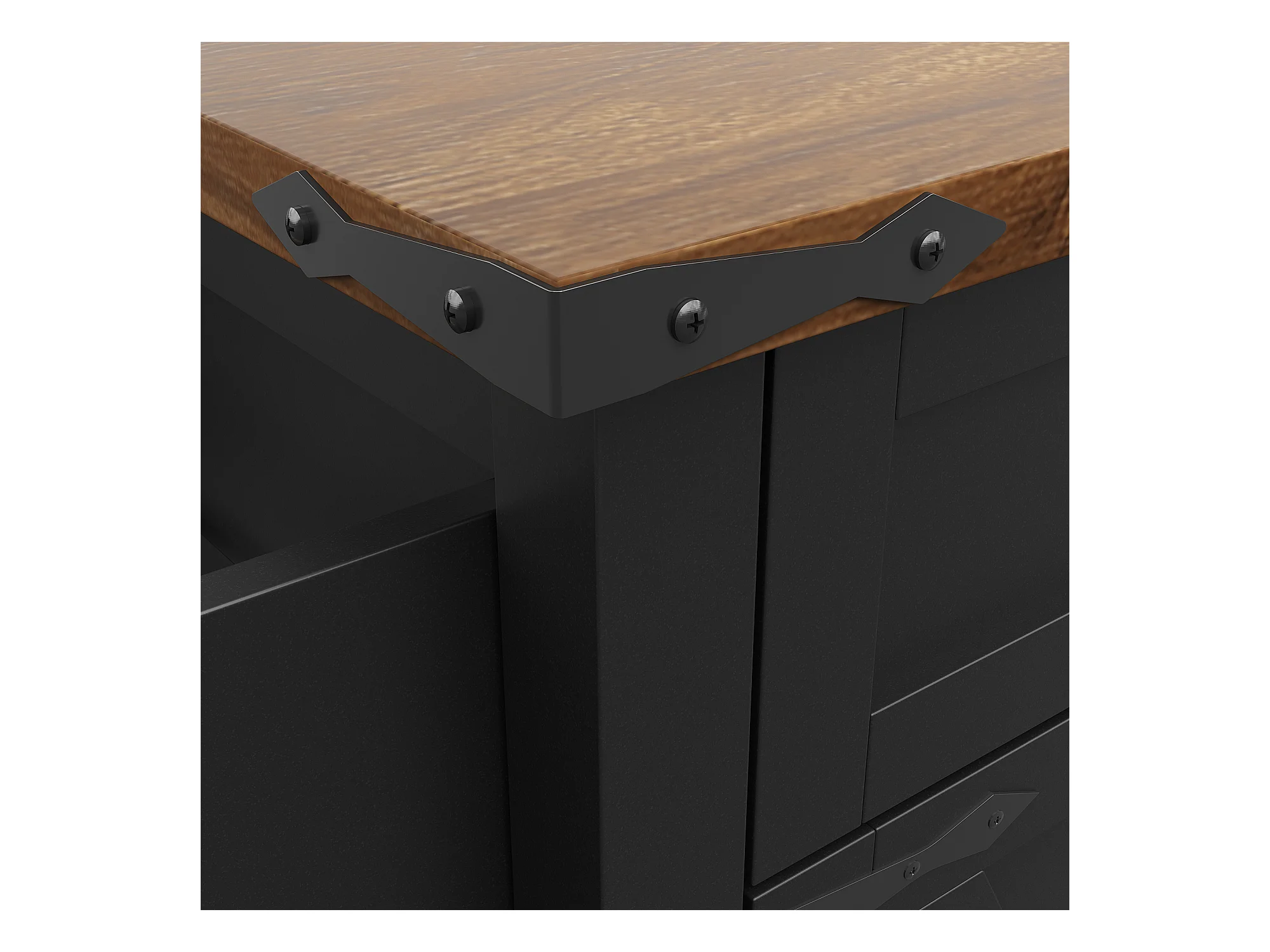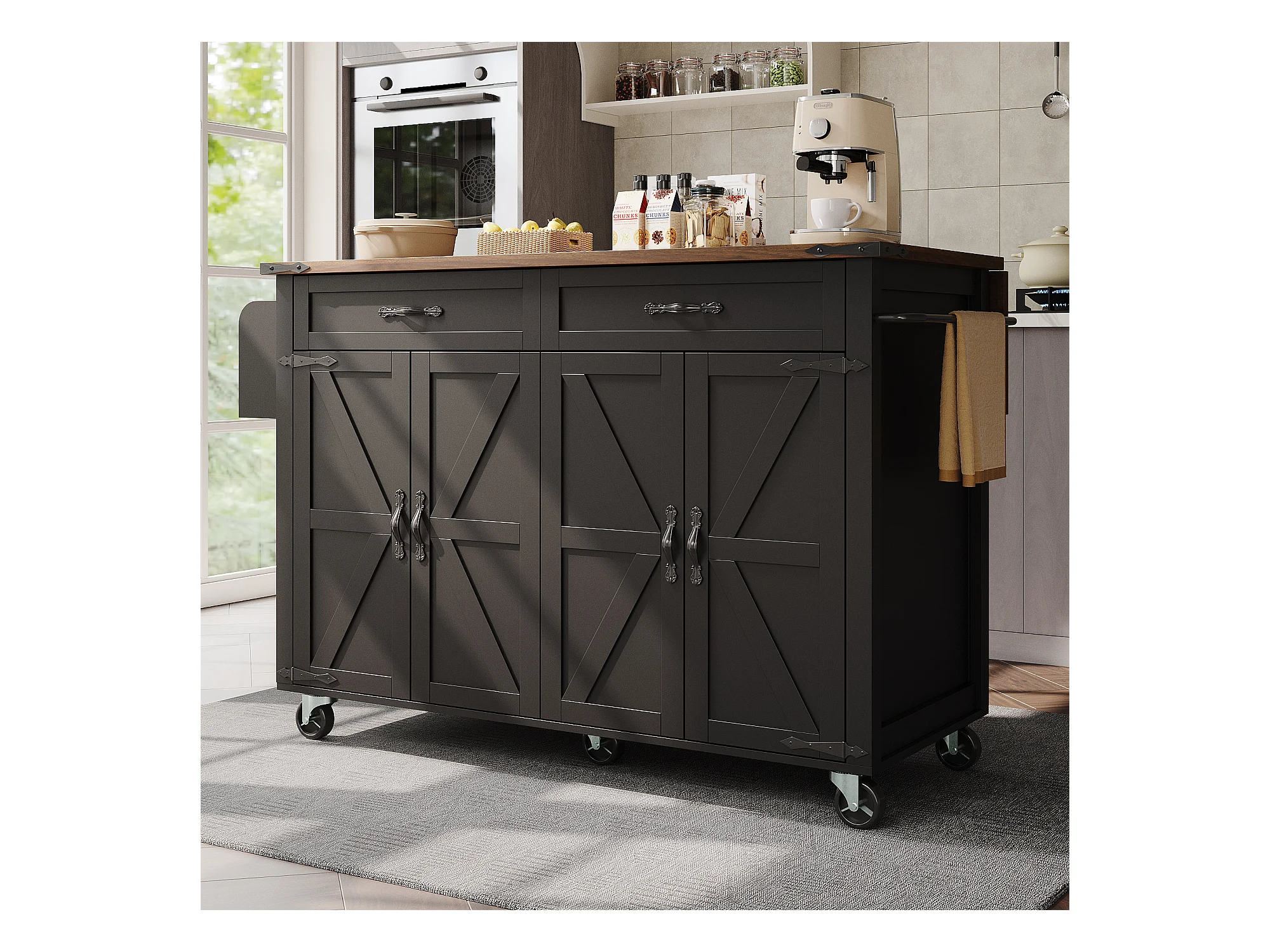 Îlot de cuisine à roulettes - 140 x 45 x 90 cm - avec plan extensible + 4 portes + 2 tiroirs - Métal + MDF - noir
