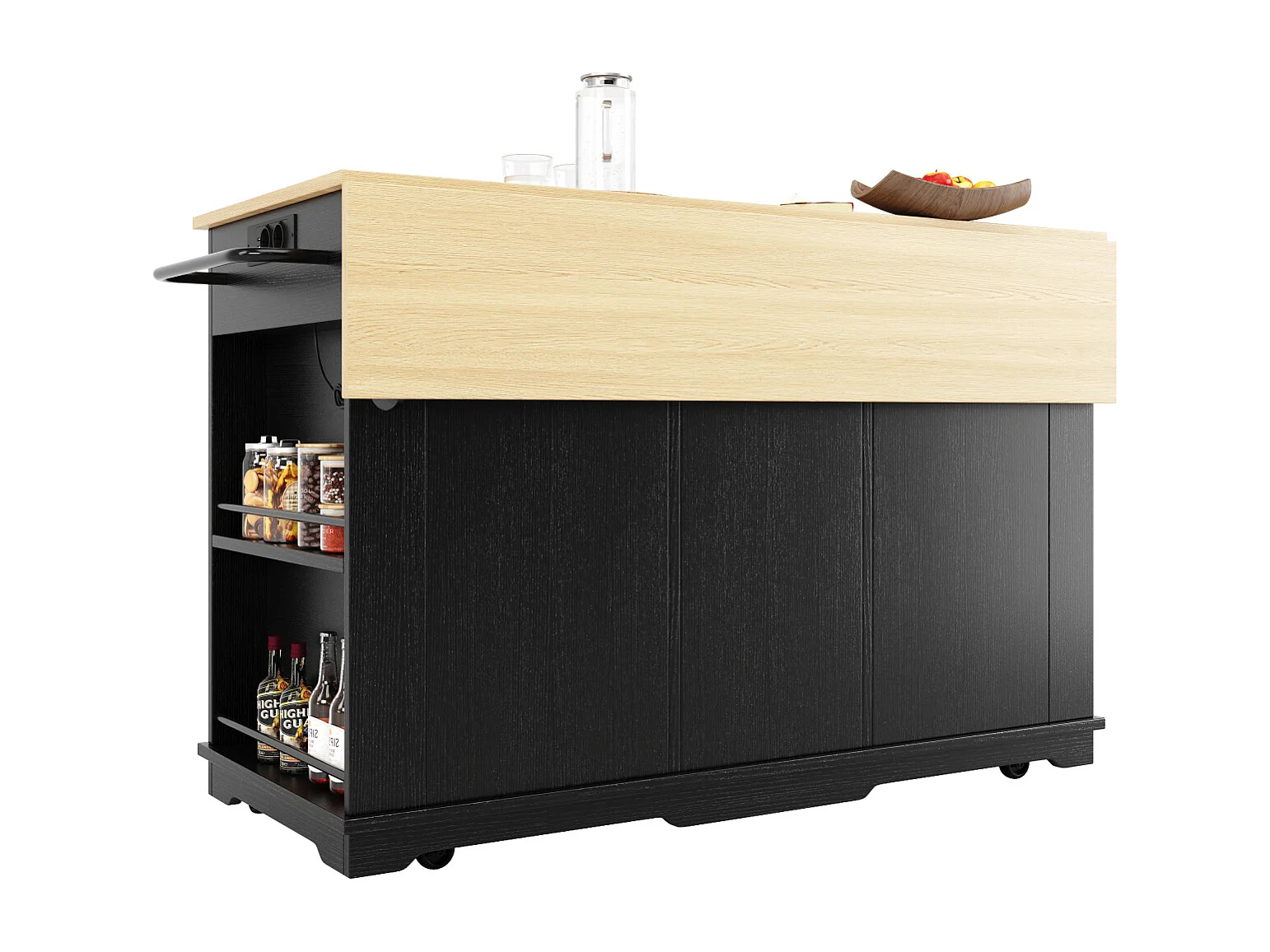 Îlot de cuisine avec multiprise, desserte avec finition bois, noir