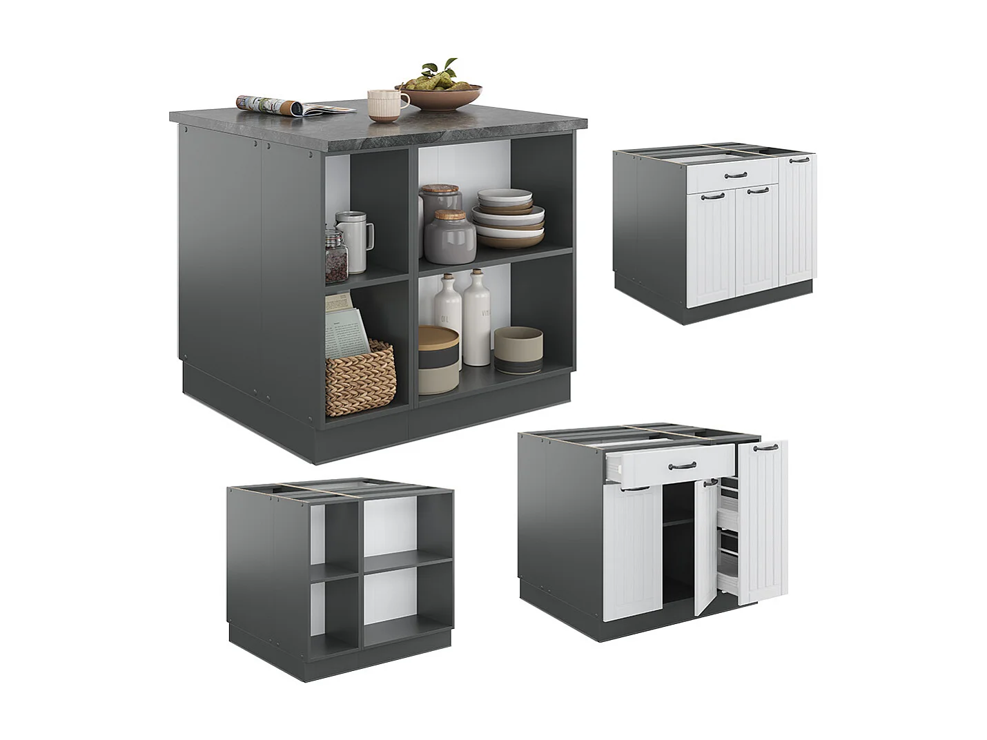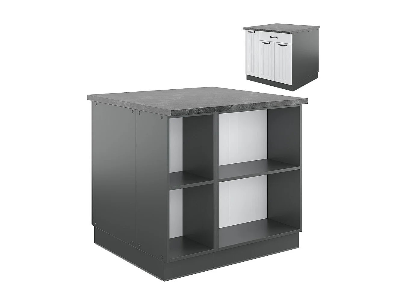 Îlot de cuisine blanc cottage/anthracite 90x60x82 fame-line